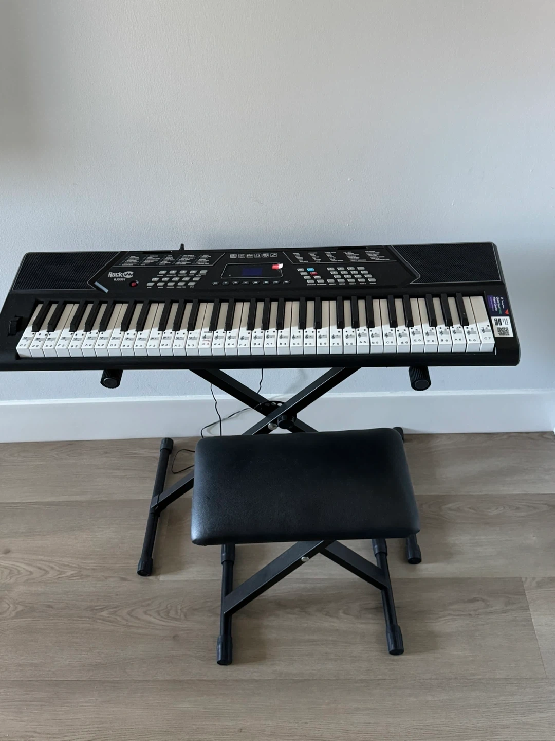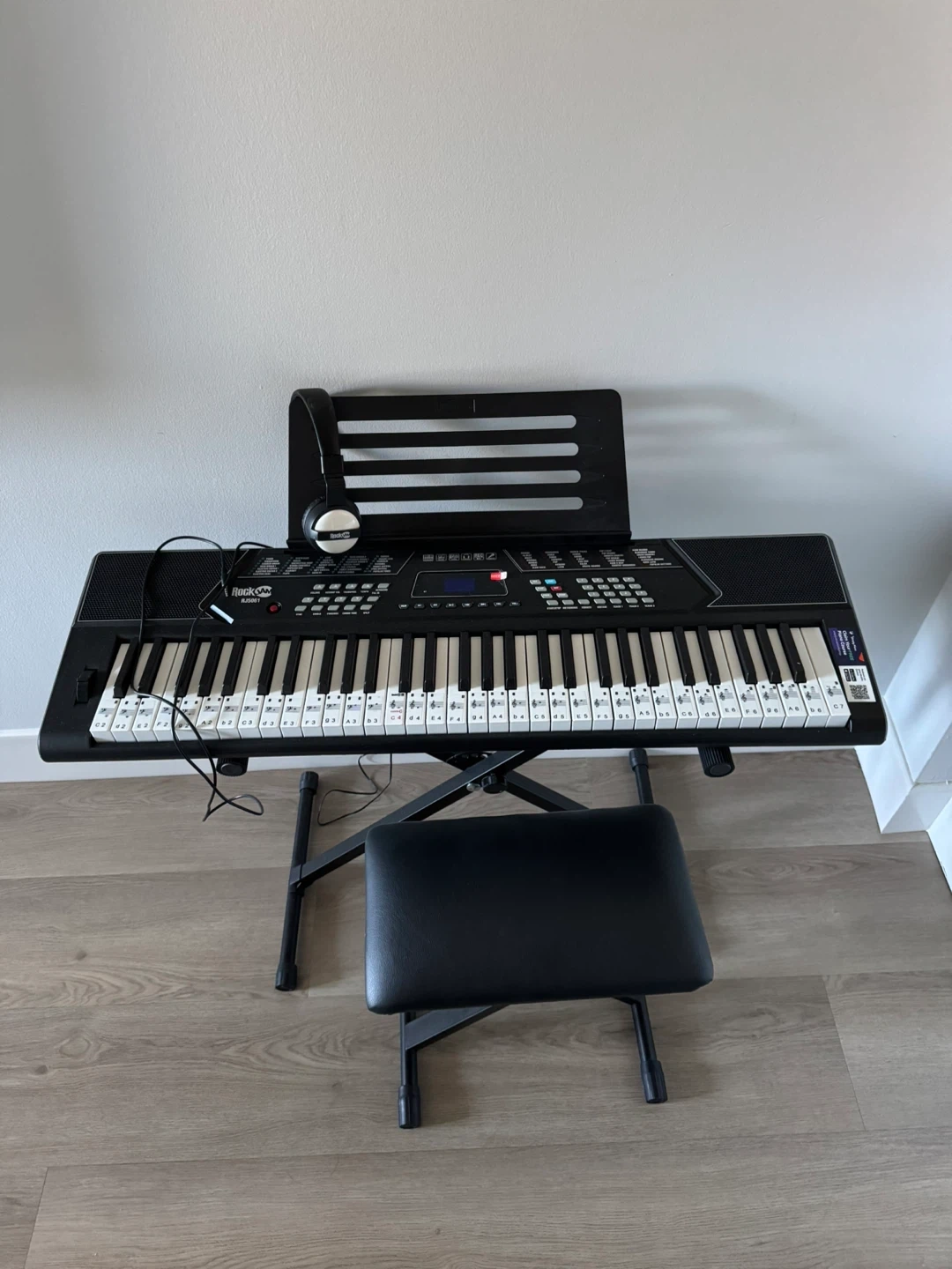 Selling a RockJam RJ654 keyboard! It comes with a stand, bench, and headphones, so you have everything you need to start playing. Perfect for beginners or anyone looking for a portable keyboard setup. Pick up only.