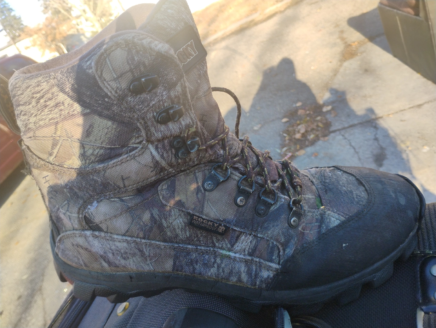 15Waterproof, and great even down to minus 30. Camo print. Only worn a handful of times. SIZE 12 men's First $25 takes em.