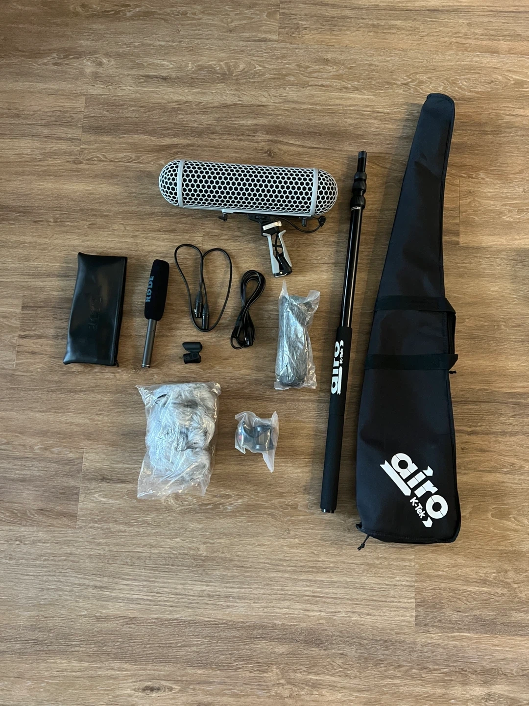 Selling a Rode NTG-2 microphone. It comes with a variety of accessories including a windscreen, cables, and a carrying case. Includes the rode Blimp. Great for recording audio!