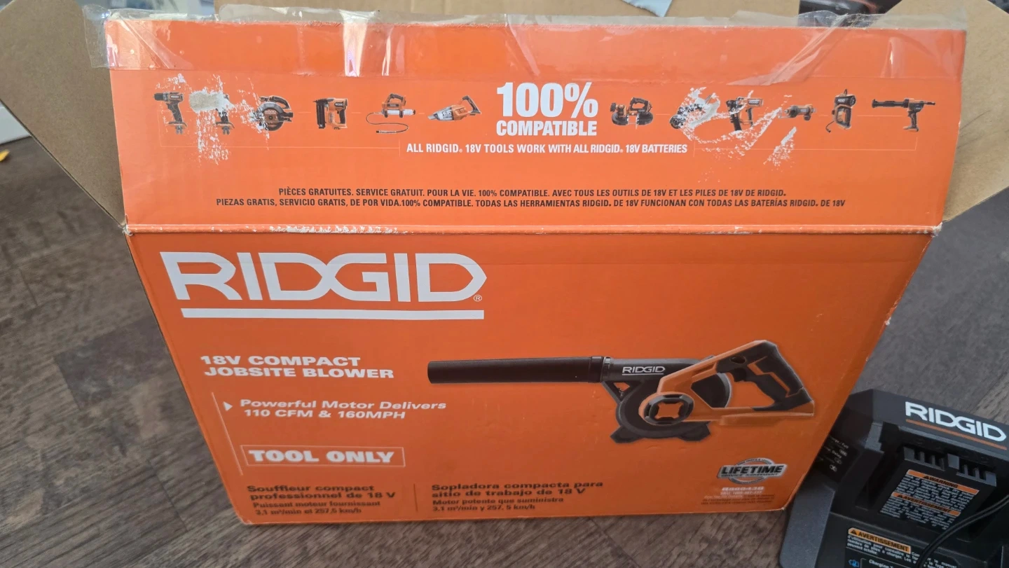 **Like new Ridgid cordless blower kit** – powerful for yard/car/garage cleanup!