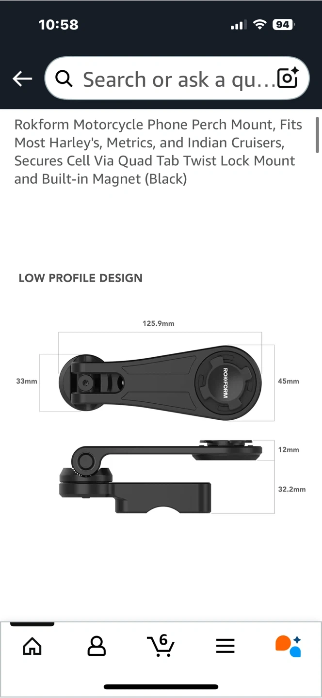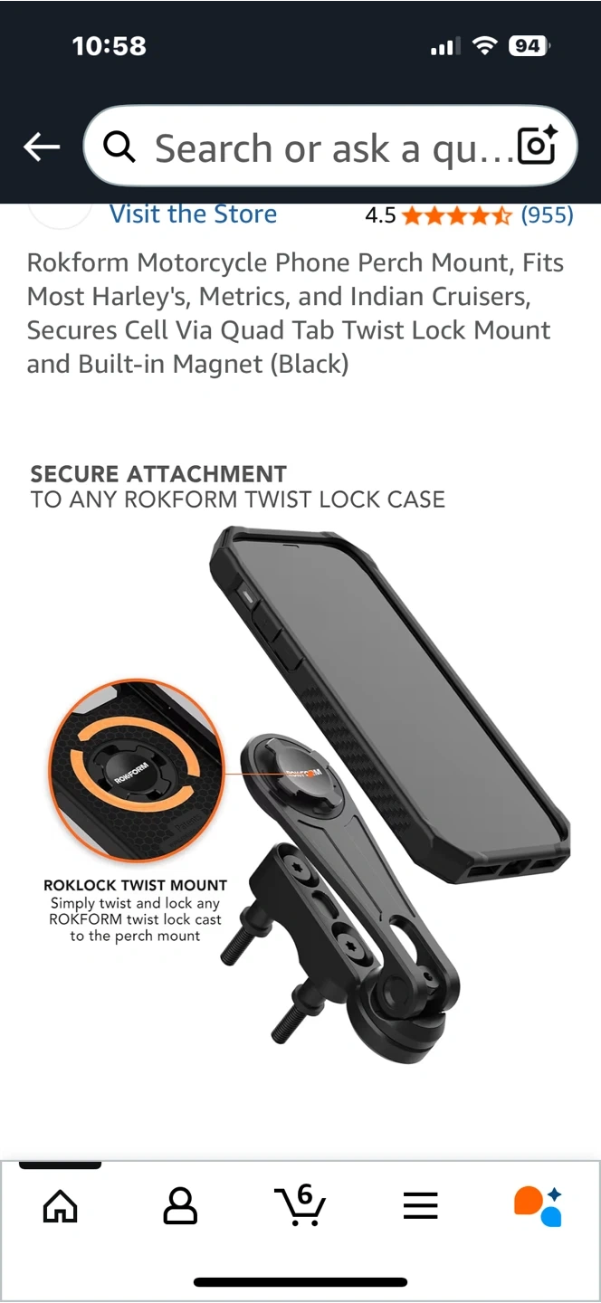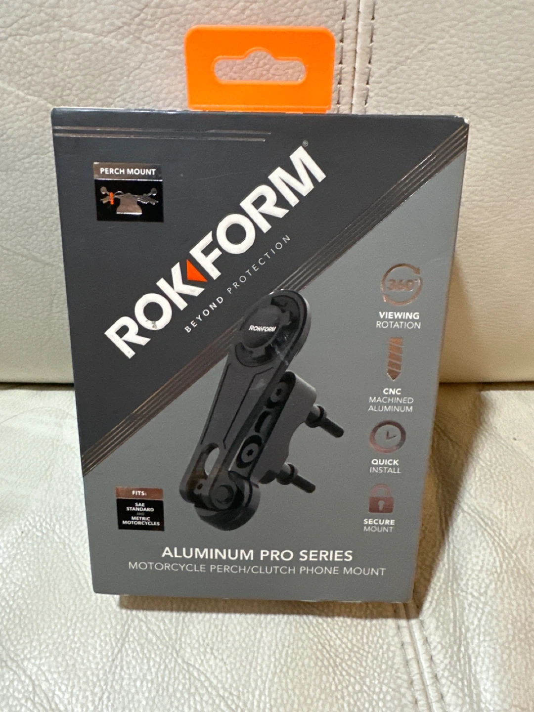 84Selling a Rokform Aluminum Pro Series Motorcycle Perch/Clutch Phone Mount. It fits most Harley's, Metrics, and Indian Cruisers. It secures your cell via a Quad Tab Twist Lock Mount and has a built-in magnet. It features 360-degree viewing rotation and quick install. New open box