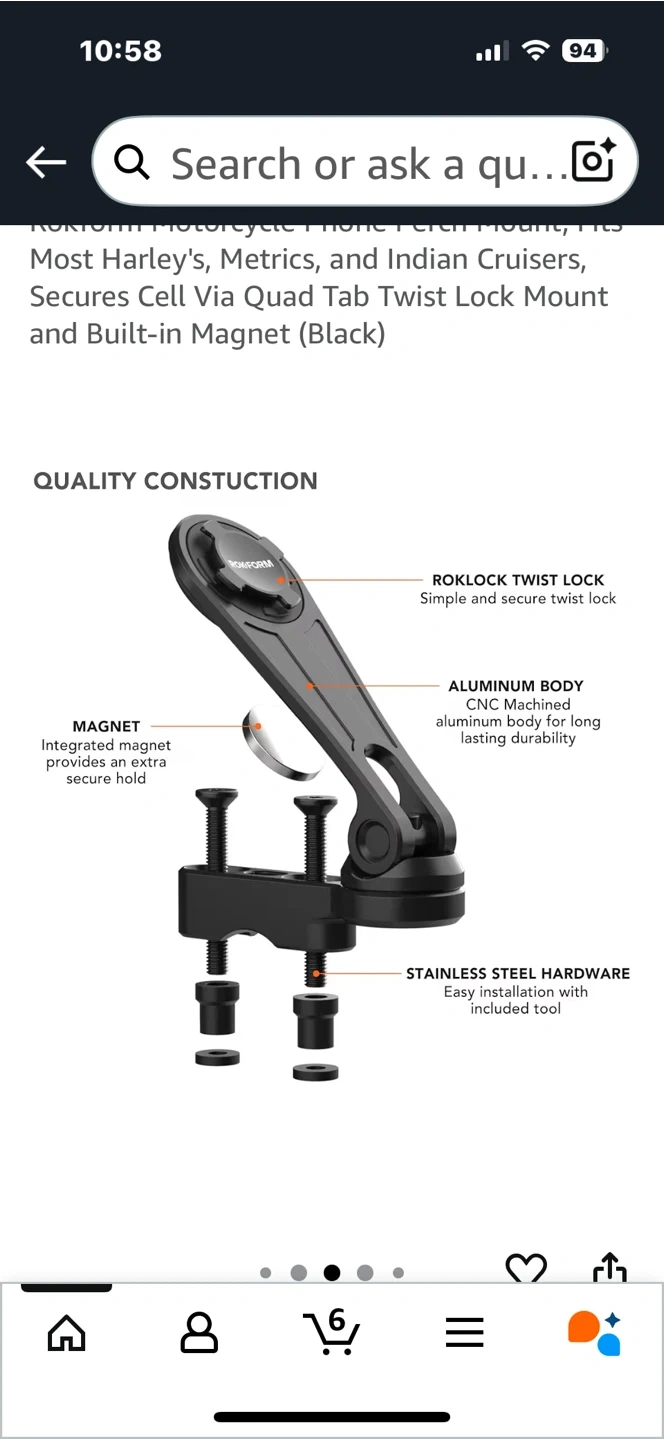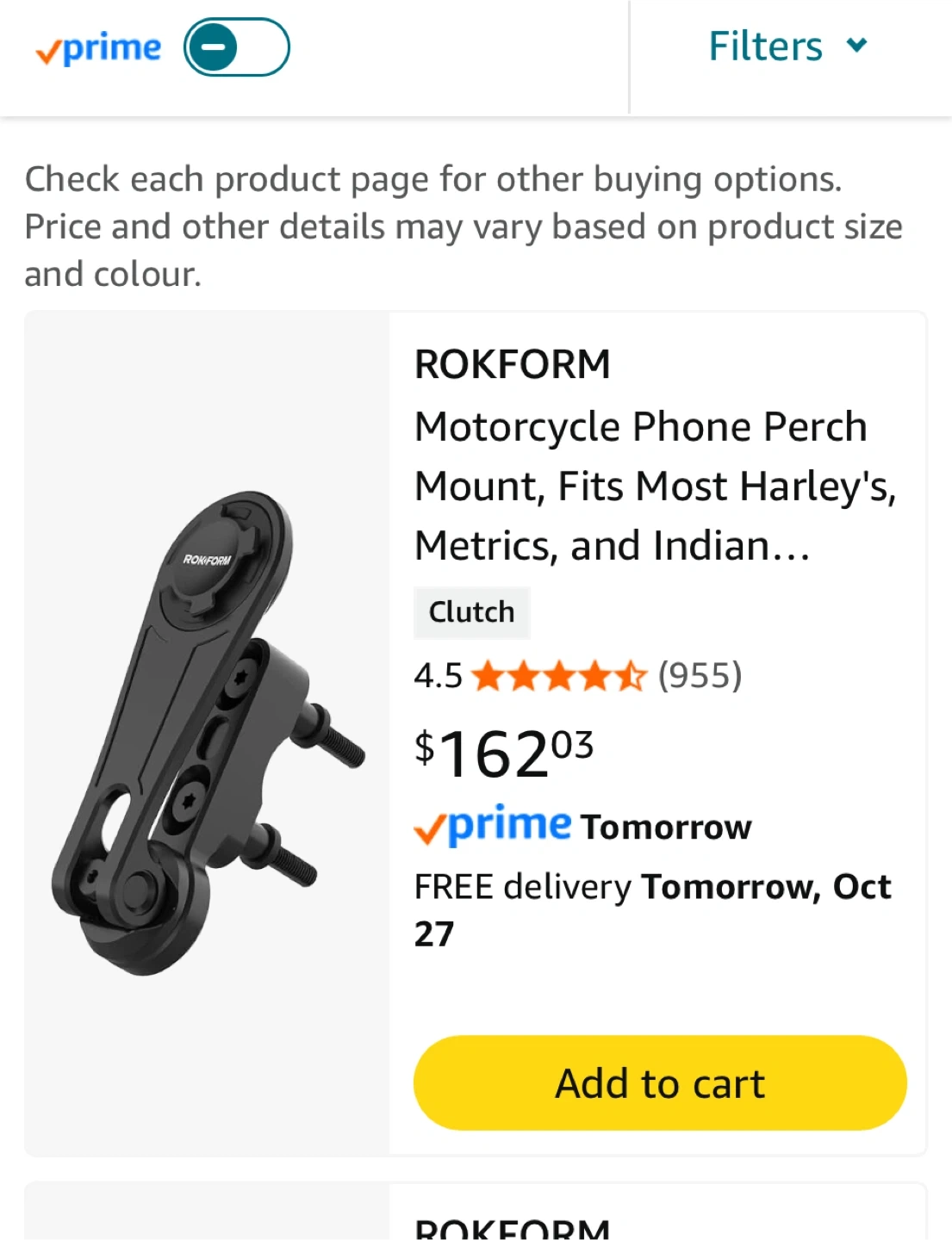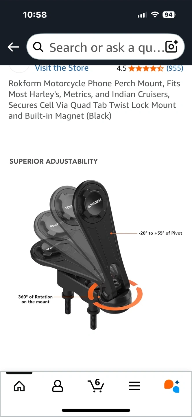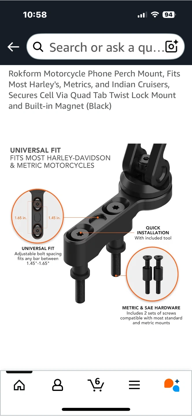 84Selling a Rokform Aluminum Pro Series Motorcycle Perch/Clutch Phone Mount. It fits most Harley's, Metrics, and Indian Cruisers. It secures your cell via a Quad Tab Twist Lock Mount and has a built-in magnet. It features 360-degree viewing rotation and quick install. New open box