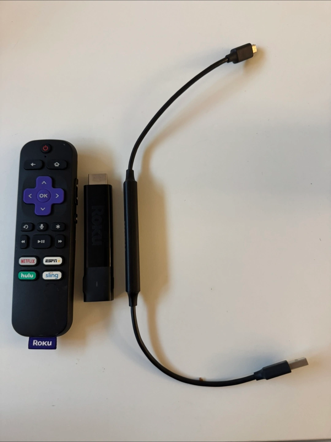 Selling a Roku Streaming Stick, model 3810X. It comes with the remote and power cable. Perfect for streaming your favourite shows and movies. Has Apple AirPlay to cast to your tv, and does full 4K HDR10. Comes with remote, usb power cable with upgraded wifi antenna (no box however).