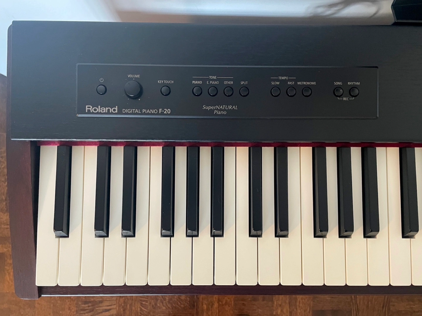 131Comes with: - Piano (perfect condition) - Upright stand (good, few marks on side during move - last pic) - Sustain Pedal - Wifi USB Key - Carrying case ▶️Serious inquiries only ▶️Pick up only ▶️Final sale ____ From the manufacturer… “If you’re looking for the first piano, the F-20 is the ideal choice. Delivering Rolands acclaimed piano technologies at a breakthrough price, this compact and attractive instrument offers best-in-class performance that provides a solid foundation for learning the instrument the right way. Its rich, authentic tone inspires young players to explore and develop their musical expression, while the fine weighted keyboard action derived from Rolands flagship models provides a true acoustic grand touch thats essential for proper piano education. As a digital instrument, the F-20 presents many advantages over traditional acoustic pianos to encourage learning and make playing fun, including recording and metronome functions, onboard rhythm accompaniment, and a wide selection of sounds beyond the piano. In addition, free Roland piano apps allow you to use your iPhone, iPad, or iPod touch with the F-20, providing a great way to motivate kids with play-along songs and enjoyable interactive features.” https://www.roland.com/au/products/f-20/specifications/