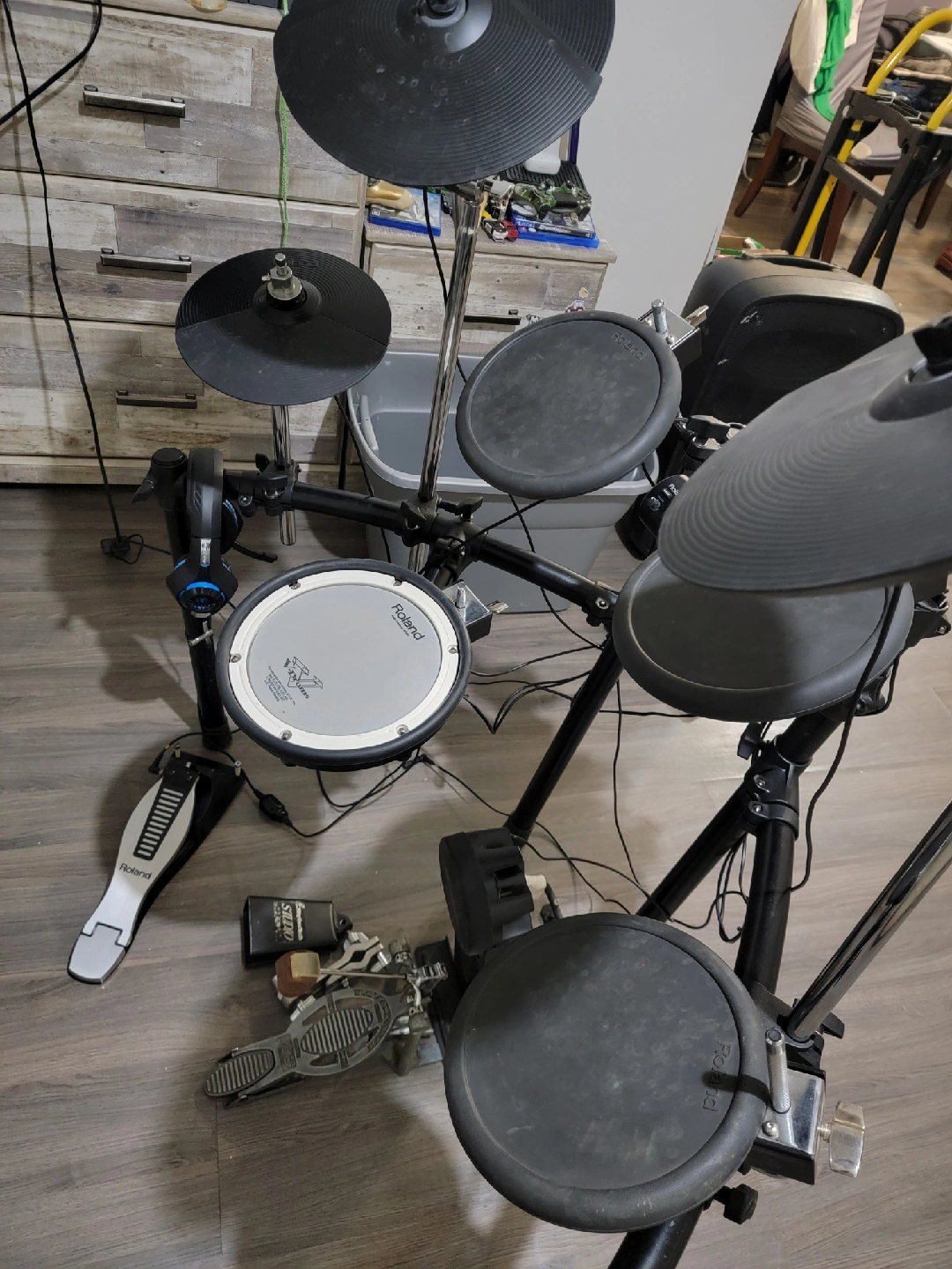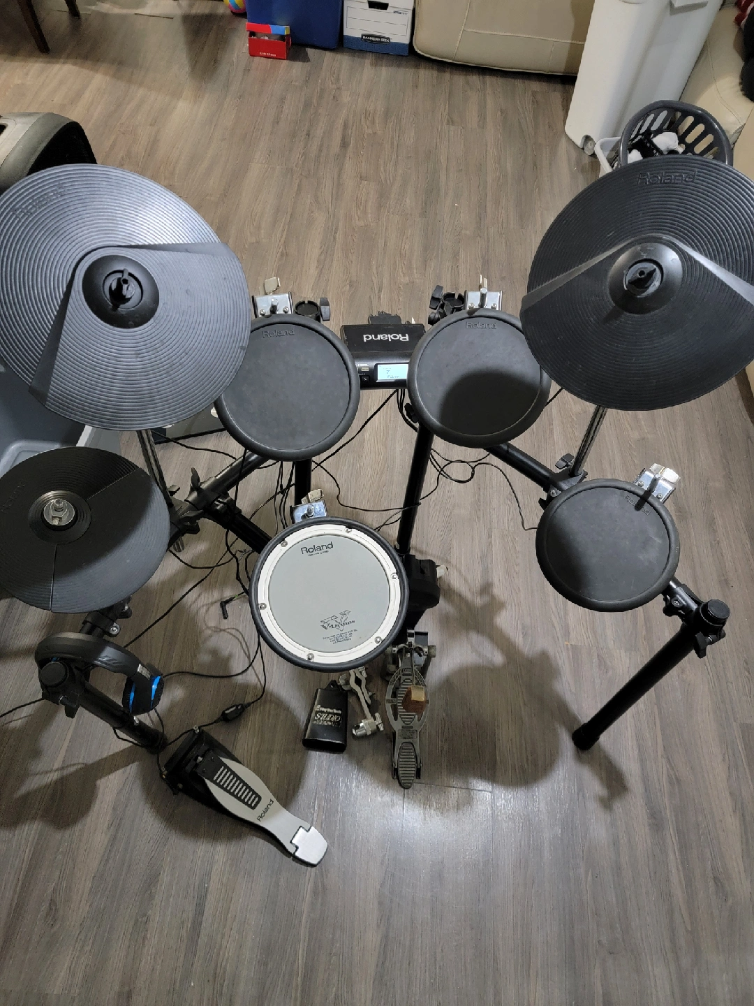 Selling a Roland TD-4 V-Drums electronic drum kit! It's in great shape and ready for a new home. Perfect for practicing quietly or recording, this kit is super versatile. Get ready to rock!