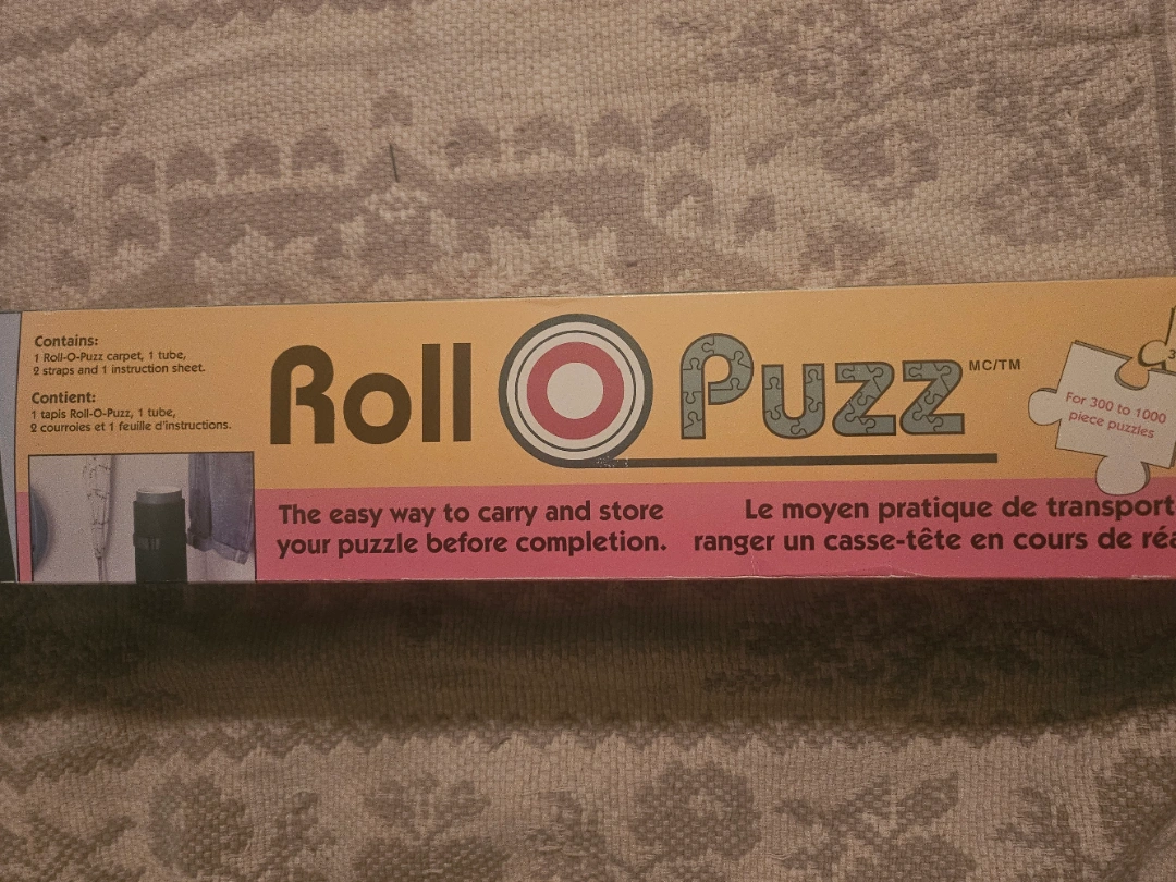 62Roll O Puzz makes it easy to carry and store your puzzle before completion! Contains 1 Roll-O-Puzz carpet, 1 tube, 3 straps and 1 instruction sheet. For 300 to 1000 piece puzzles Pickup only please. Sorry no holds.
