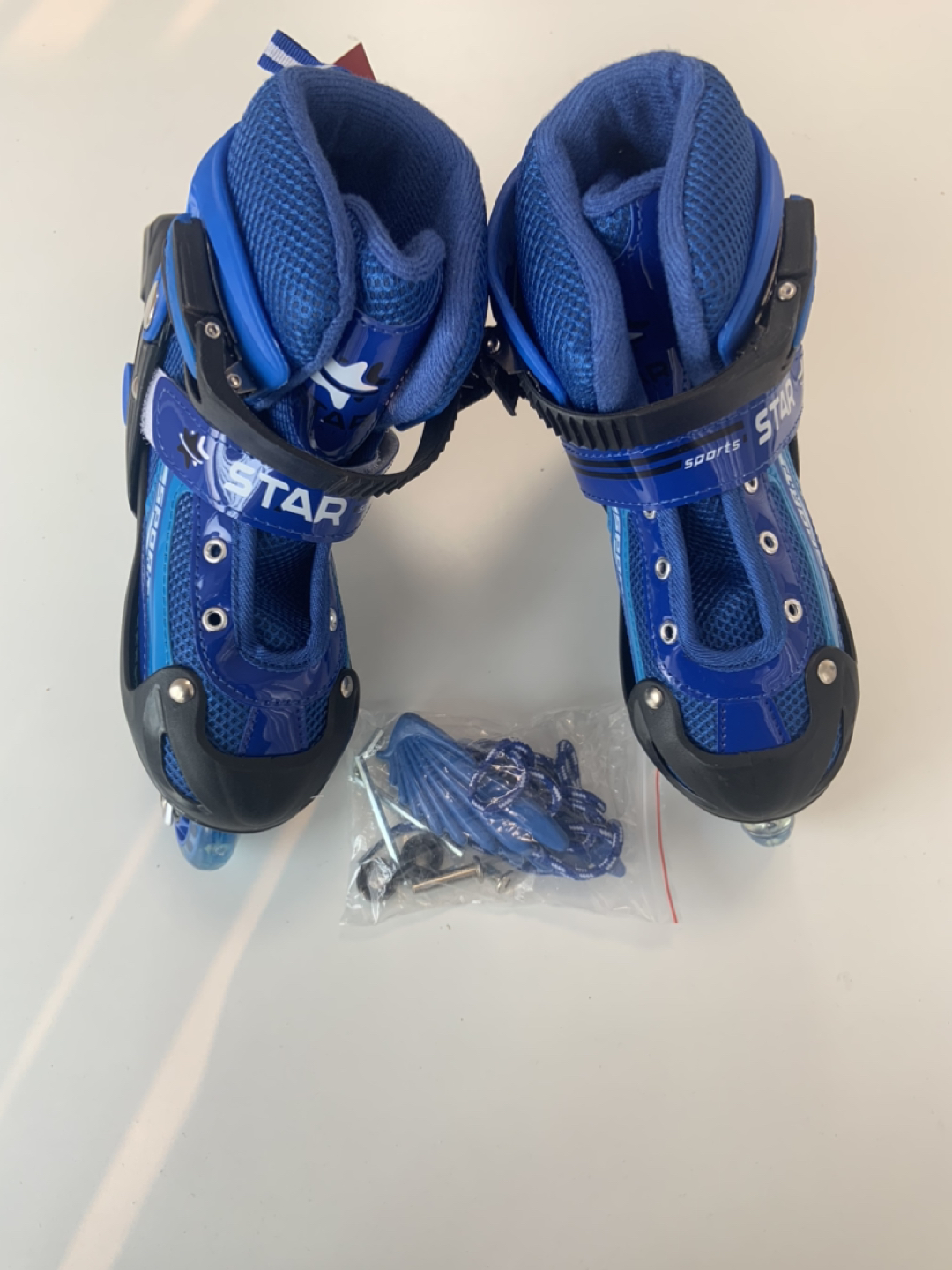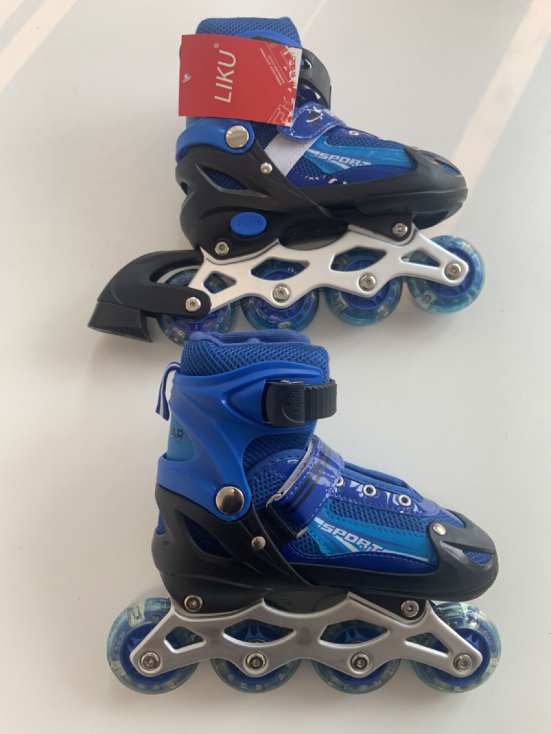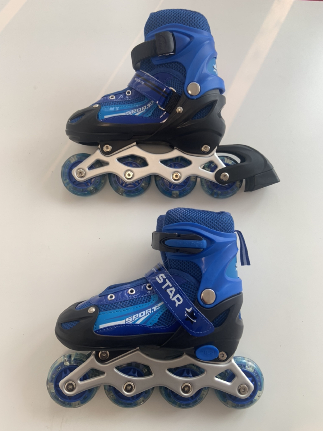 44kids Adjustable Inline Skates with Light up Wheels, Outdoor & Indoor Illuminating Roller Skates, Roller skates skating shoes for Boys, Girls, Beginners, side with wing Color: blue Size: S (31-34)