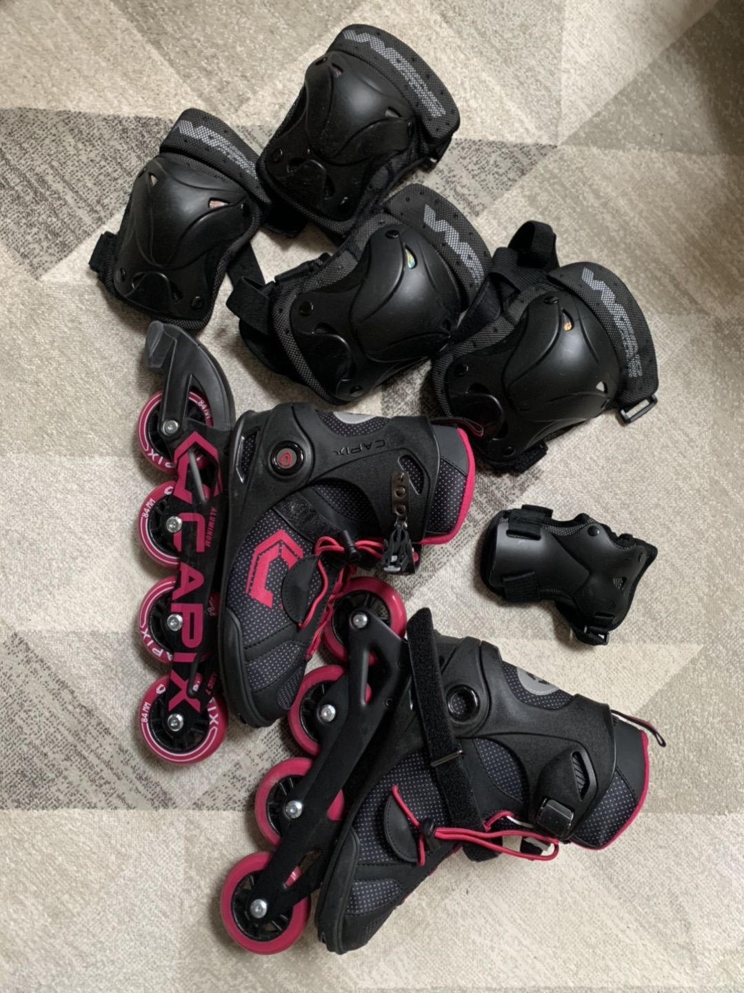 10Selling a Capix rollerblade size 8 and safety equipment. Used just a couple times, in perfect condition. Retails for $129 (rollerblades) + $40 safety equipment. Selling both for only $80. https://www.nationalsports.com/products/capix-polaris-womens-inline-skates?variant=32556803620943&gclid=Cj0KCQiA0rSABhDlARIsAJtjfCftgFlv2VeLJ9dpWV-kenYDq4RDBlCWa3rleTBHWpQGbhsjnPxKecoaAhPgEALw_wcB#fo_c=2635&fo_k=3c3ac6baedd8e5cddf9f07a5d977b5e5&fo_s=gplaca&utm_campaign=gs-2018-09-20&utm_source=google&utm_medium=smart_campaign