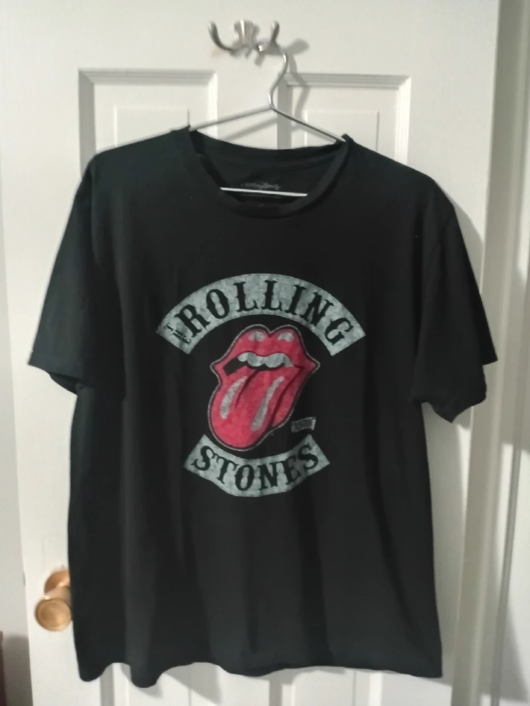 30worn twice.. black Rolling Stones t-shirt. It's in great condition and features the iconic Rolling Stones logo. Perfect for any fan!
