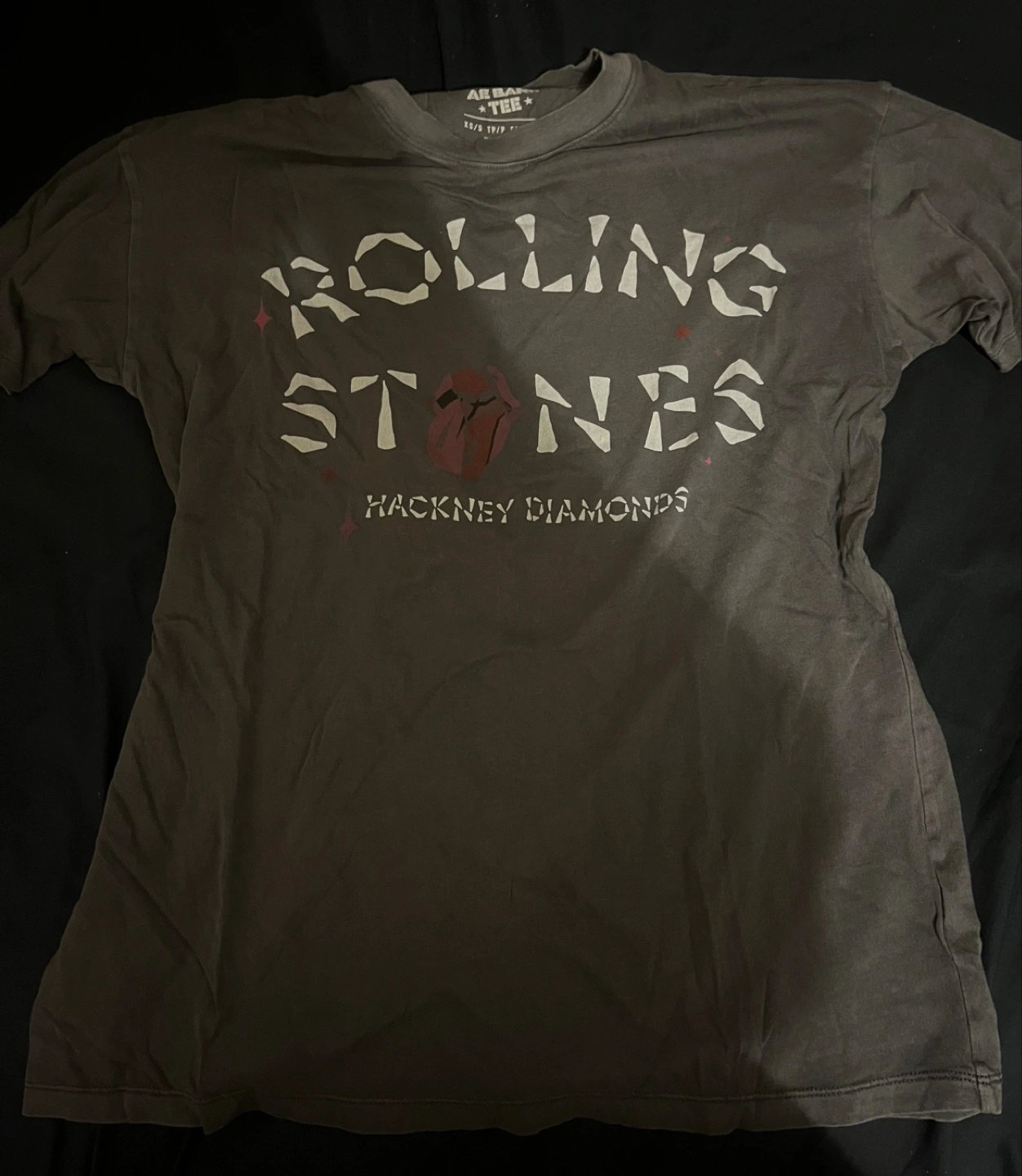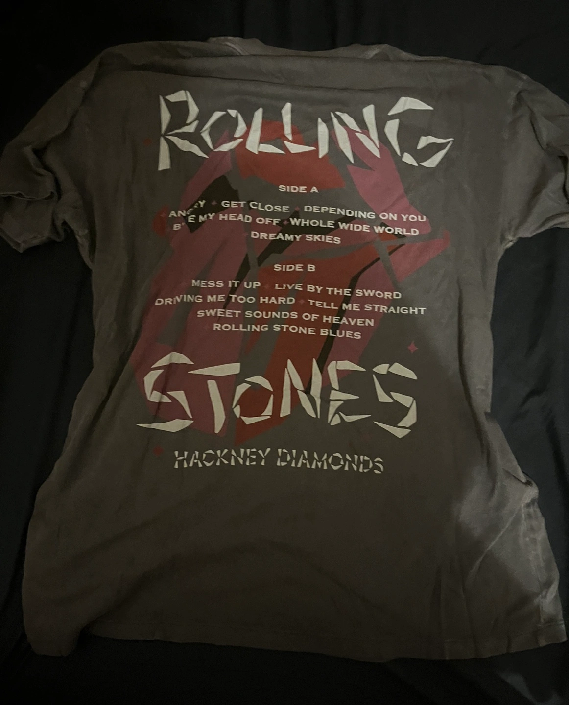 American Eagle Rolling Stones Hackney Diamonds t-shirt! It's an AE Band Tee in size XS, but fits a bit more like a women’s size small and could probably fit medium. Will still fit XS men’s or women’s. The shirt features graphics from the Rolling Stones' Hackney Diamonds album on both the front and back, super cool! Not available on AE website anymore Only worn once or twice Will bundle 2 AE band tees on my page for $30 for both!