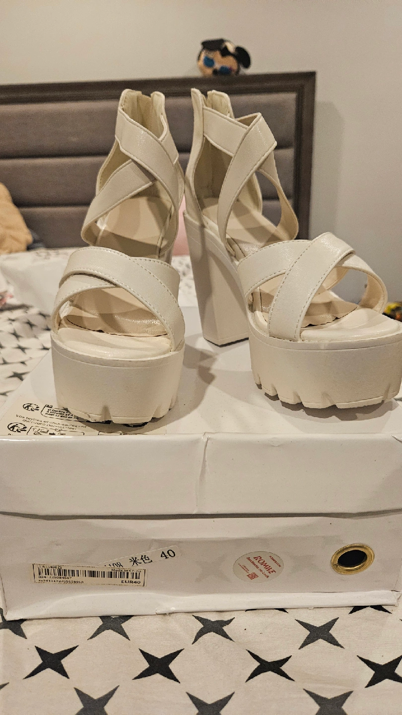 76These white platform heels are super cute and in great condition! They are a size 40. Perfect for adding a bit of height and style to any outfit!