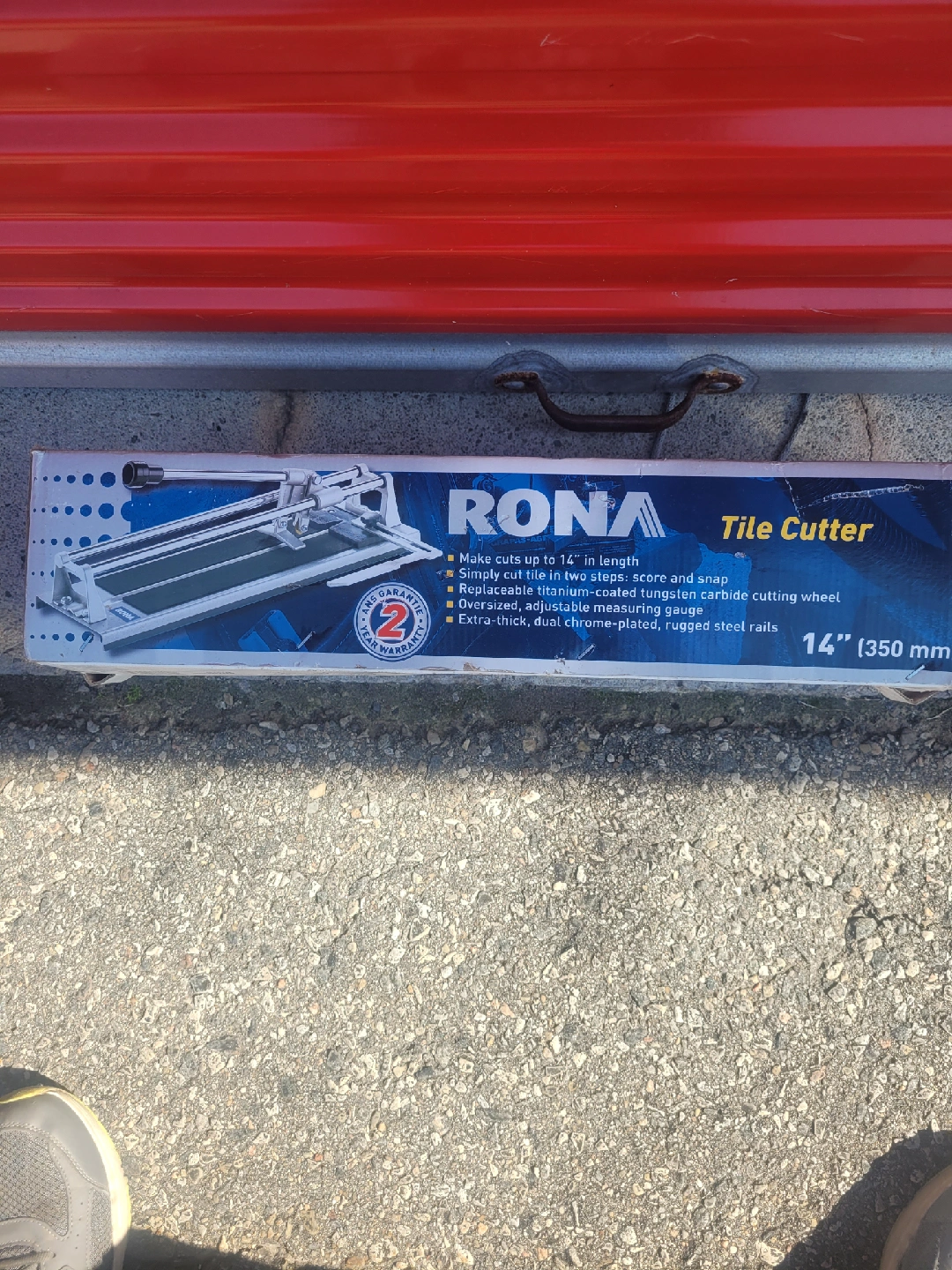 31Selling a RONA tile cutter that can make cuts up to 14 inches in length. It simplifies cutting tile in two steps: score and snap! It features a replaceable titanium-coated tungsten carbide cutting wheel, an oversized adjustable measuring gauge, and extra-thick, dual chrome-plated, rugged steel rails