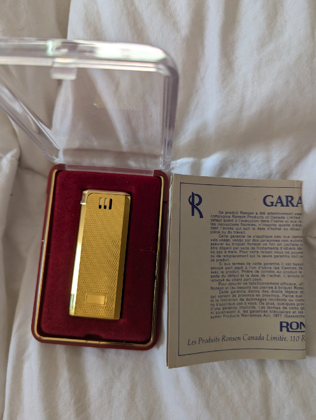 Selling a Ronson Varaflame Butane Lighter, Series 5000. It's butane refillable and features a fingertip adjustable flame. Comes with its original box and warranty! never used brand new vintage!!!!