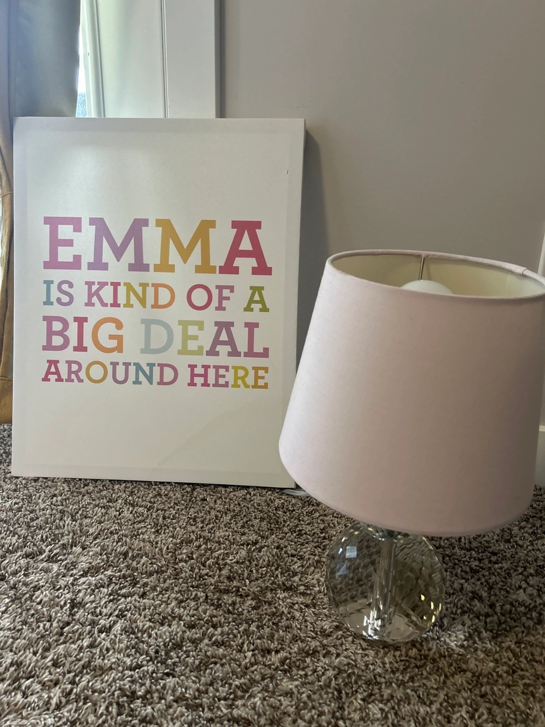 Emma wall art and pink desk lamp! Perfect for girls/teen room. Must buy both!