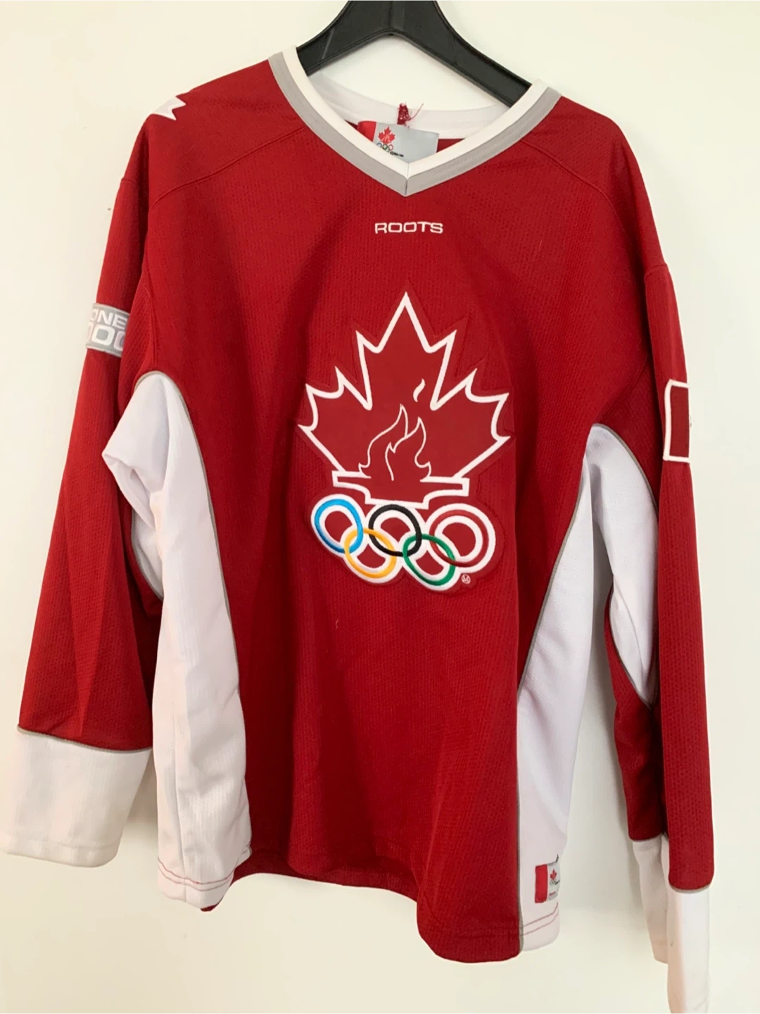 77Selling a Roots Canada hockey jersey from the Sydney 2000 Olympics. It's a size medium and made of 100% polyester. The jersey features the iconic maple leaf and Olympic rings logo. Perfect for any Canadian hockey fan or collector!