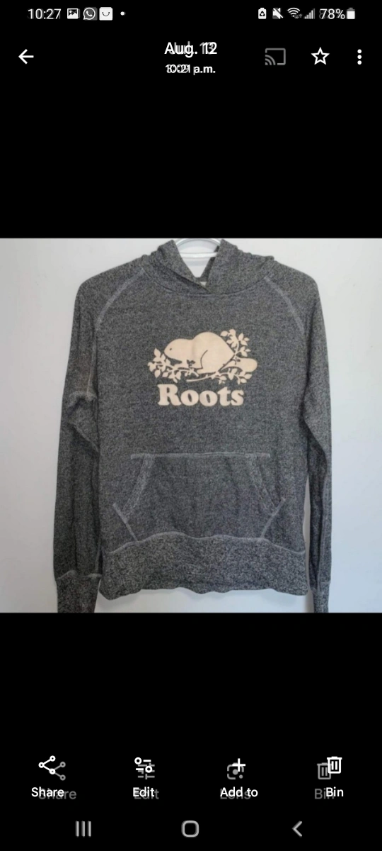 Selling a Roots grey crewneck sweatshirt with the classic beaver logo. It's in great condition and super comfy for those cooler days! Also available is an Adidas grey sweatshirt with stripes and a small logo. And a Roots grey hoodie with the beaver logo! Feel free to ask any questions