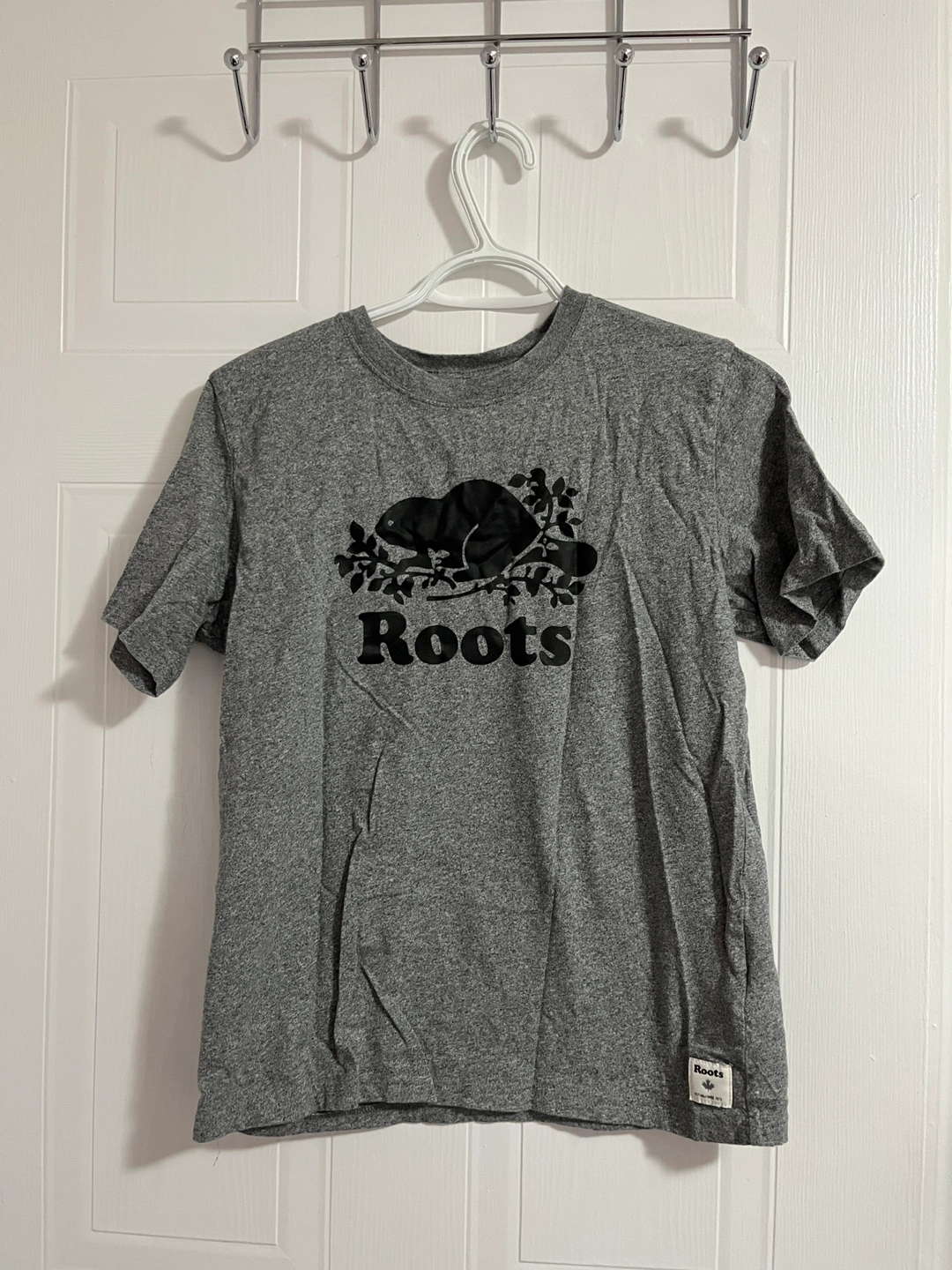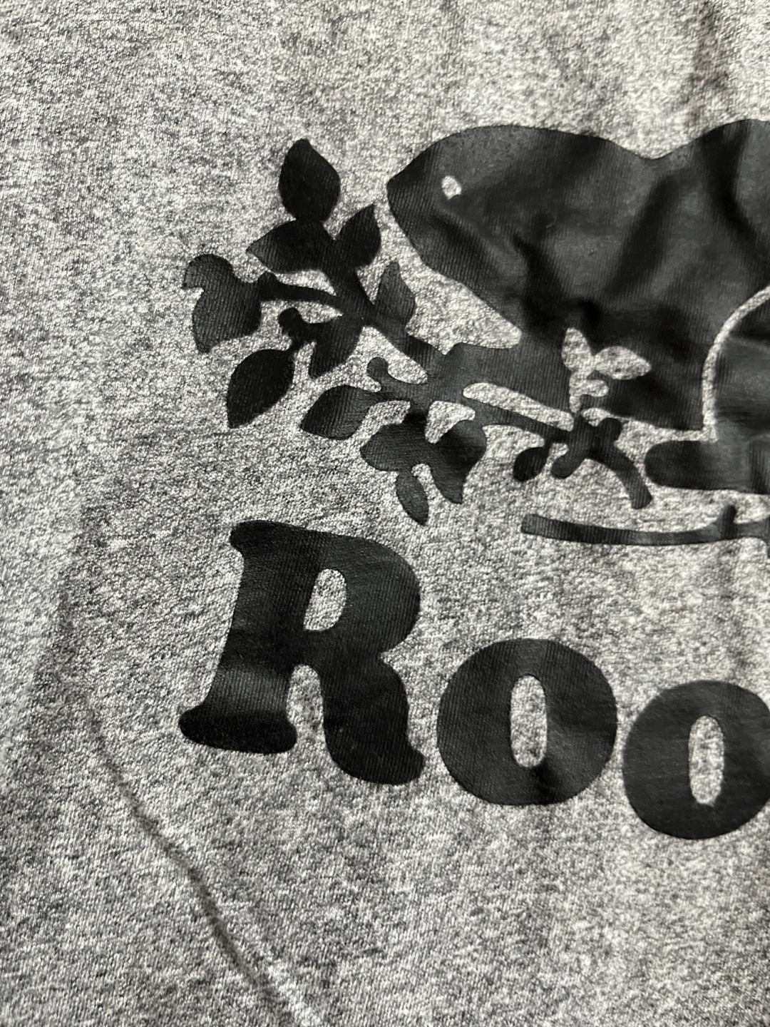 18Grey heather Roots t-shirt. Short sleeves. Classic beaver logo.