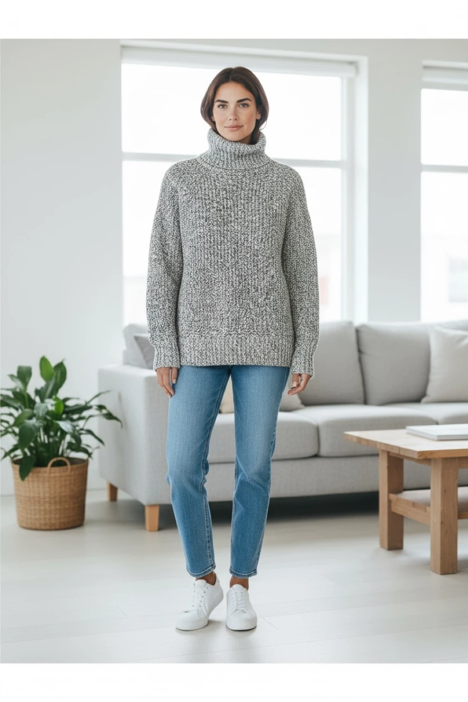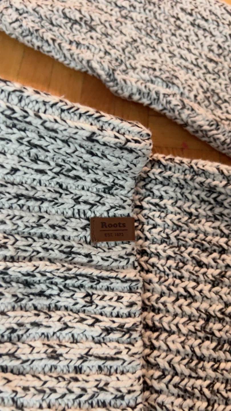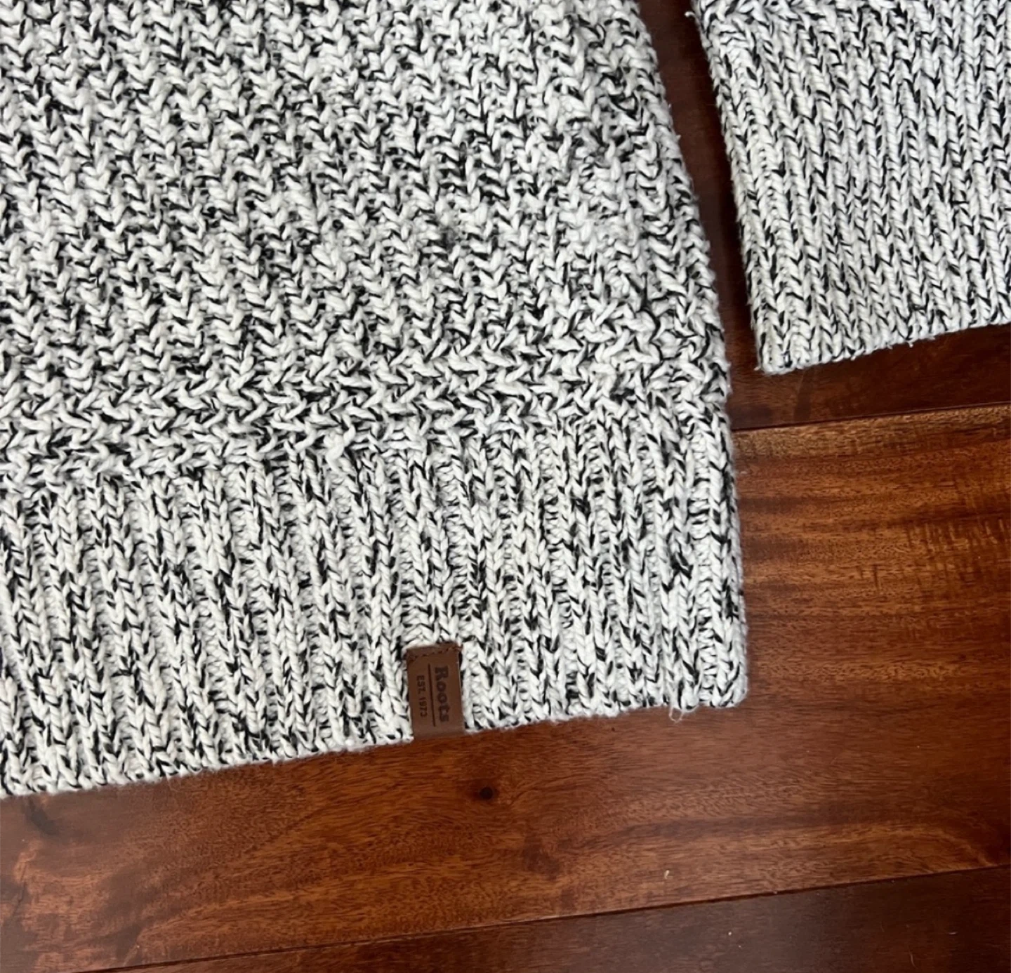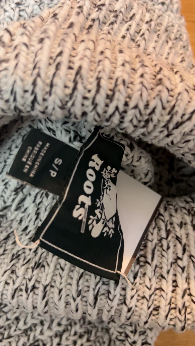 Cozy Roots turtleneck sweater in a salt and pepper knit! It's a size S/P. Perfect for chilly Canadian days