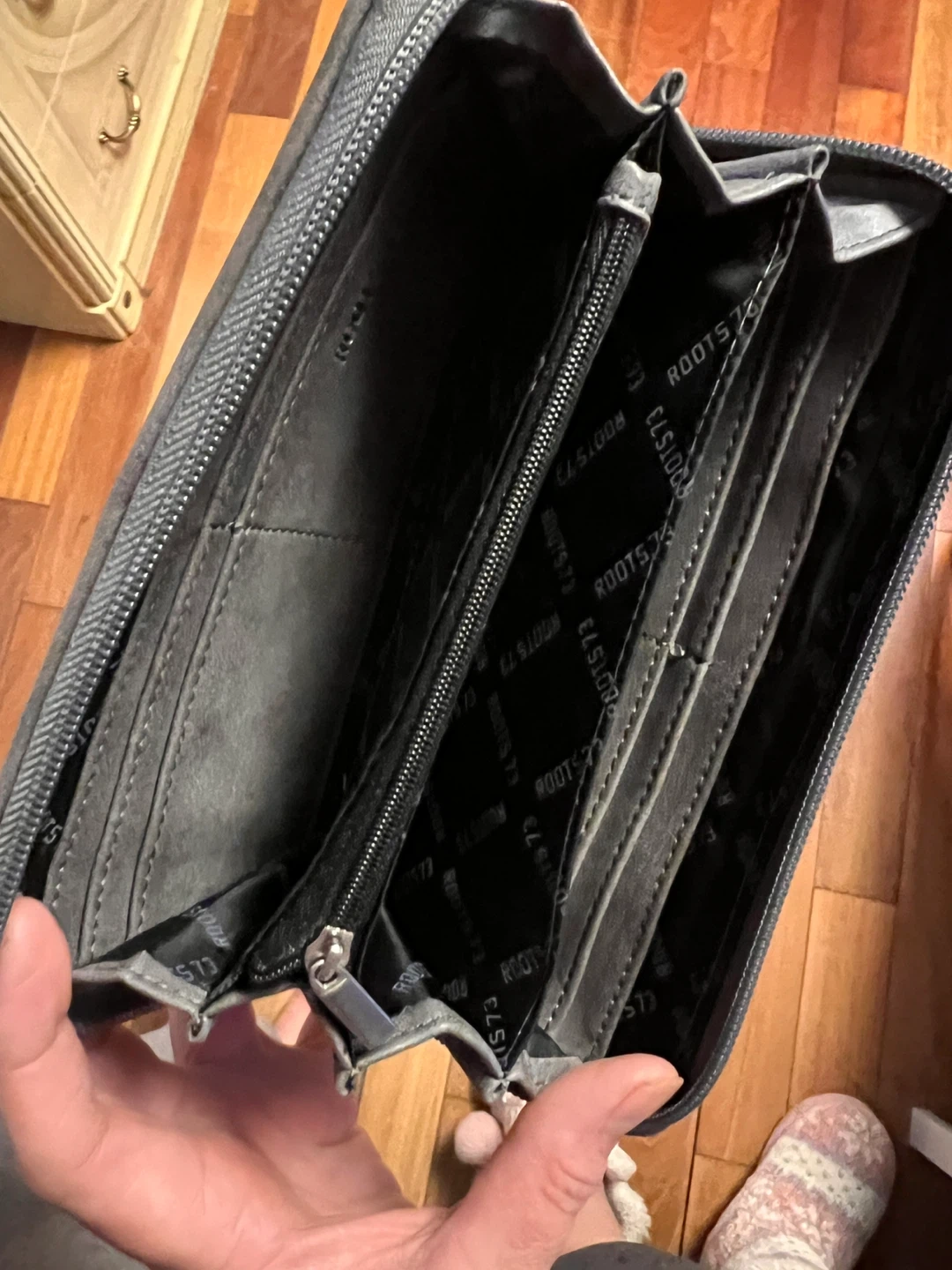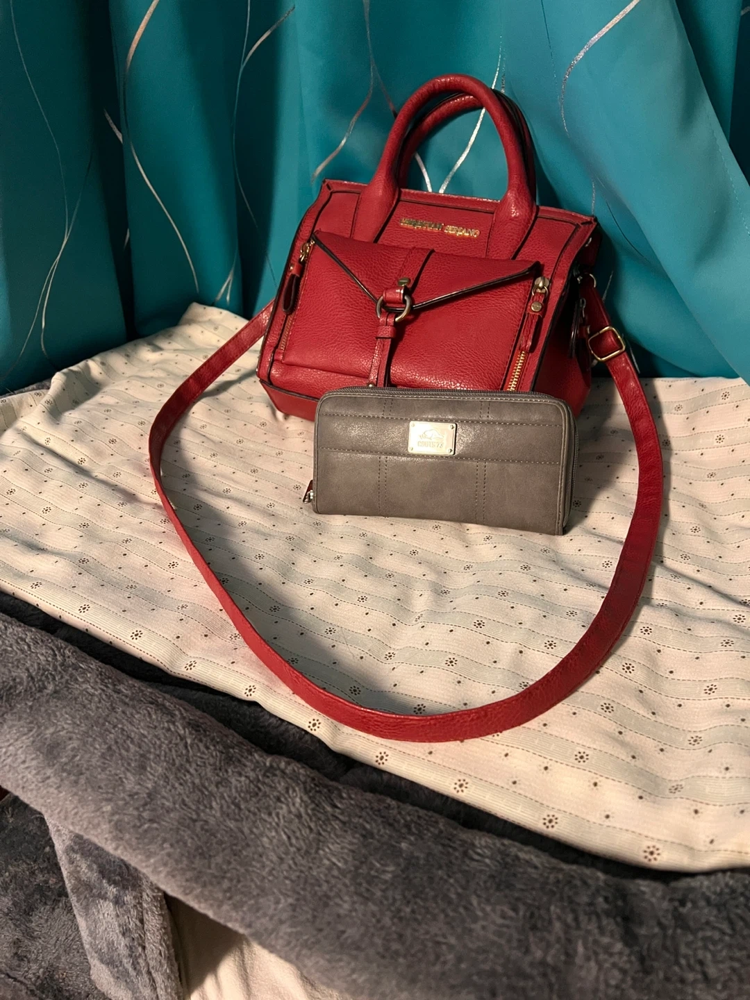 10Red purse with cross body strap. Plus Roots wallet both in good condition!