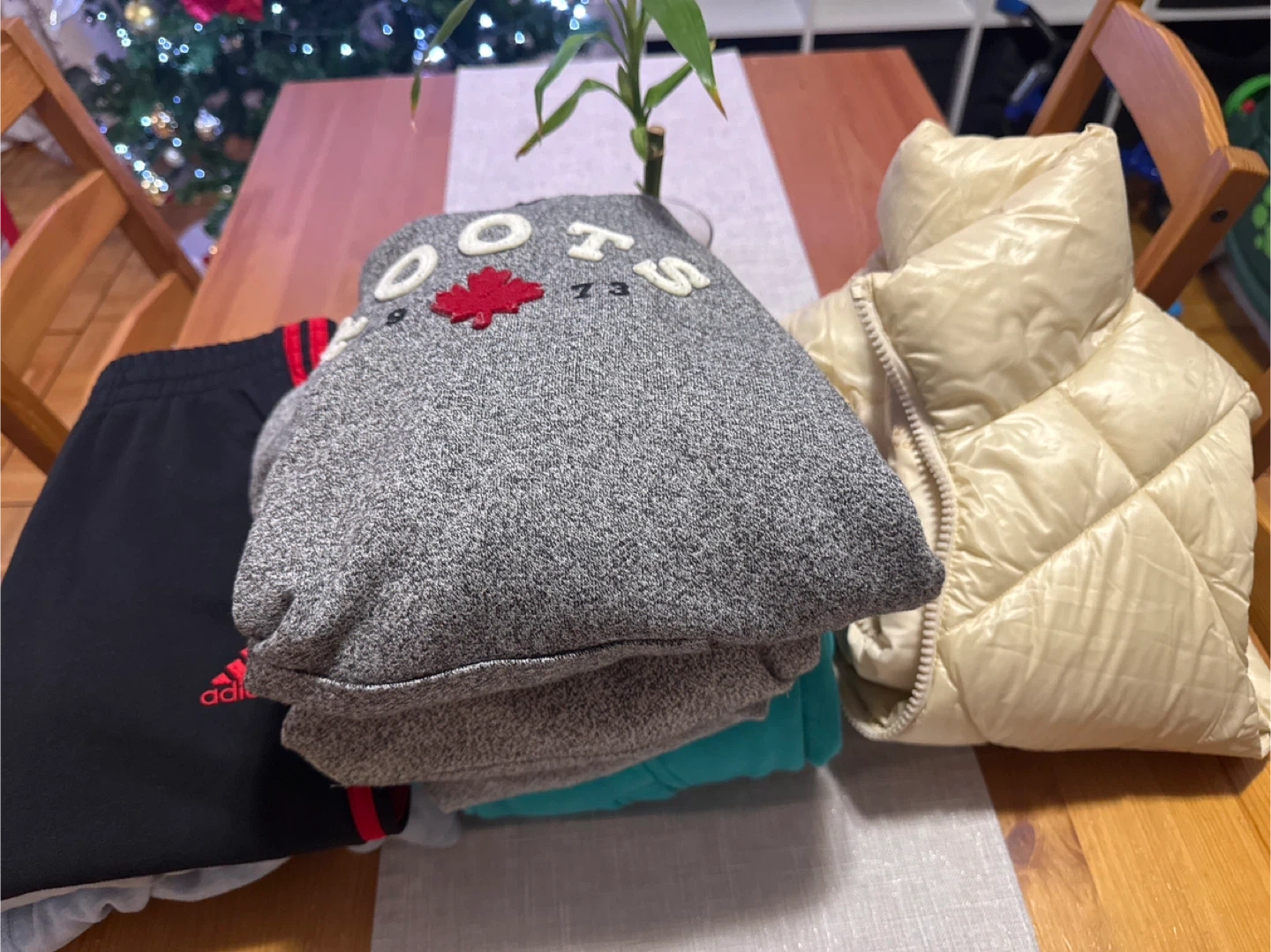 Selling a bundle of clothes including Roots sweaters and a Zara vest. All items are in great condition and ready for a new home!