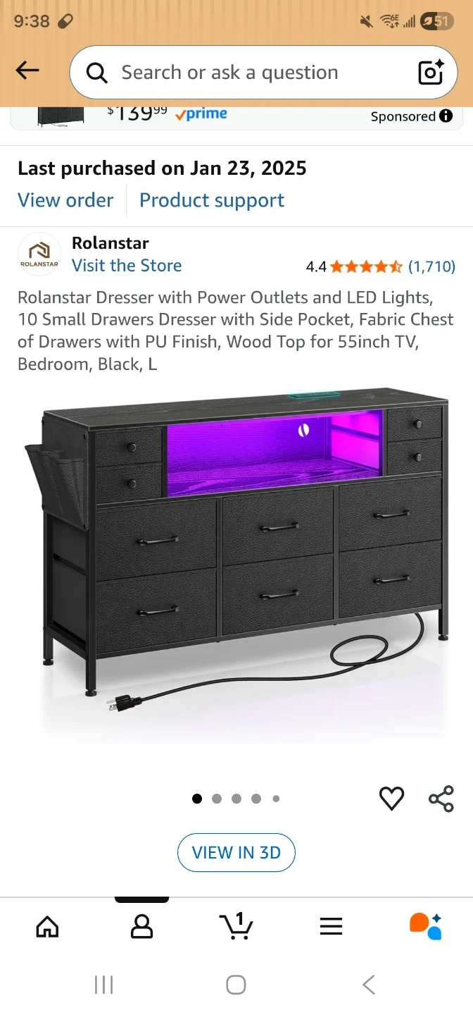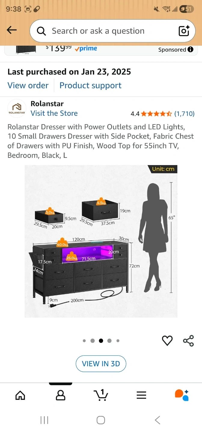 This dresser comes with power outlets and LED lights. It features 10 small drawers with a side pocket and a PU finish. The wood top is suitable for a 55-inch TV. Its dimensions are 200cm wide by 72cm high by 30cm deep.