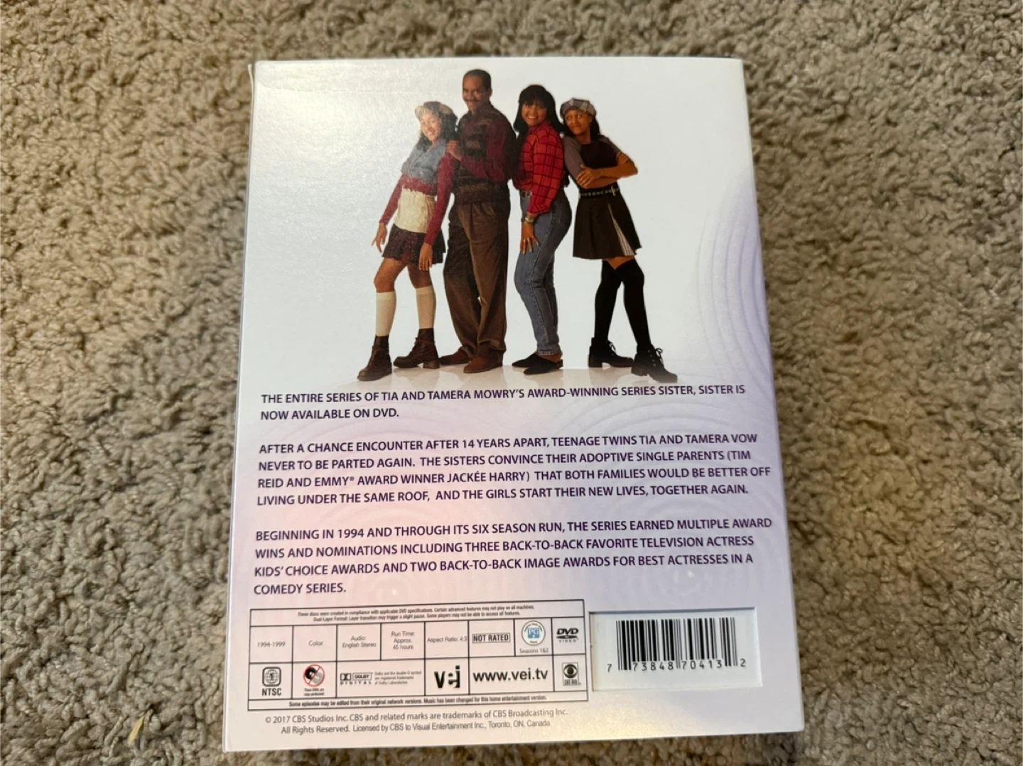 Own the entire "Sister, Sister" series on DVD, featuring all 119 episodes. This complete collection includes every season of the award-winning show. Relive the comedy and heartwarming moments of Tia and Tamera Mowry's journey.
