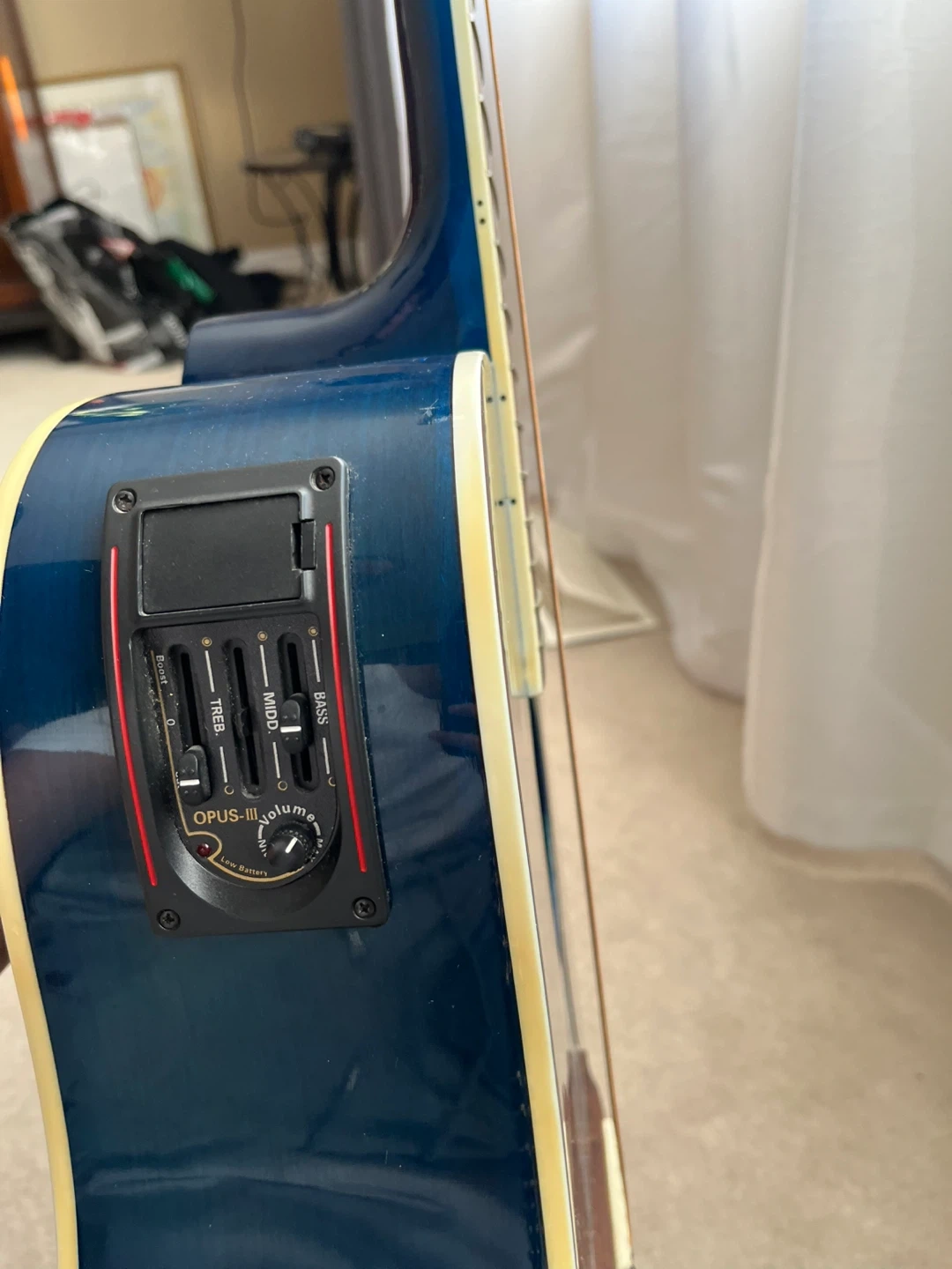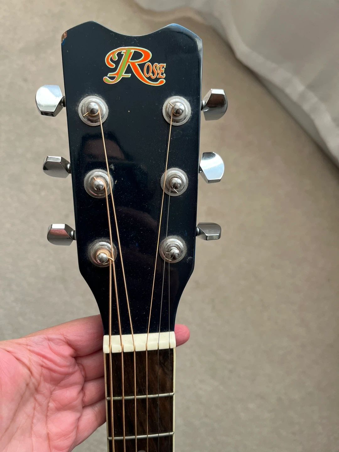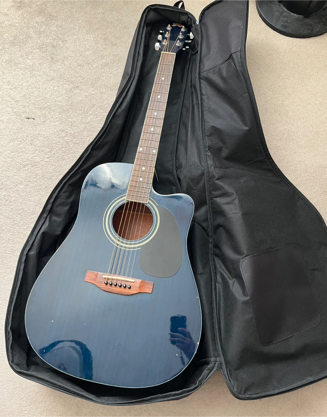 Selling J Rose acoustic electric guitar. This guitar features a sleek, dark blue finish and comes with a protective bag for easy transport. Cosmetically, there are signs of some wear but it is in good working condition I don’t know much about guitars sorry. Selling as-is. May need tuning. * Brand: J Rose * Type: Acoustic Electric Guitar * Colour: Dark Blue * Includes: Gig bag