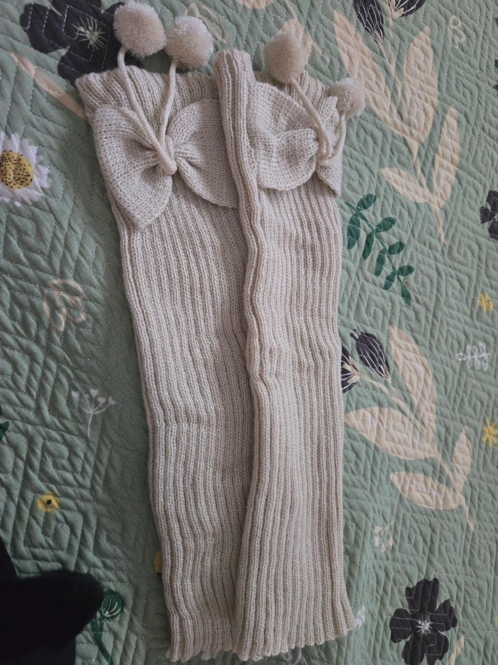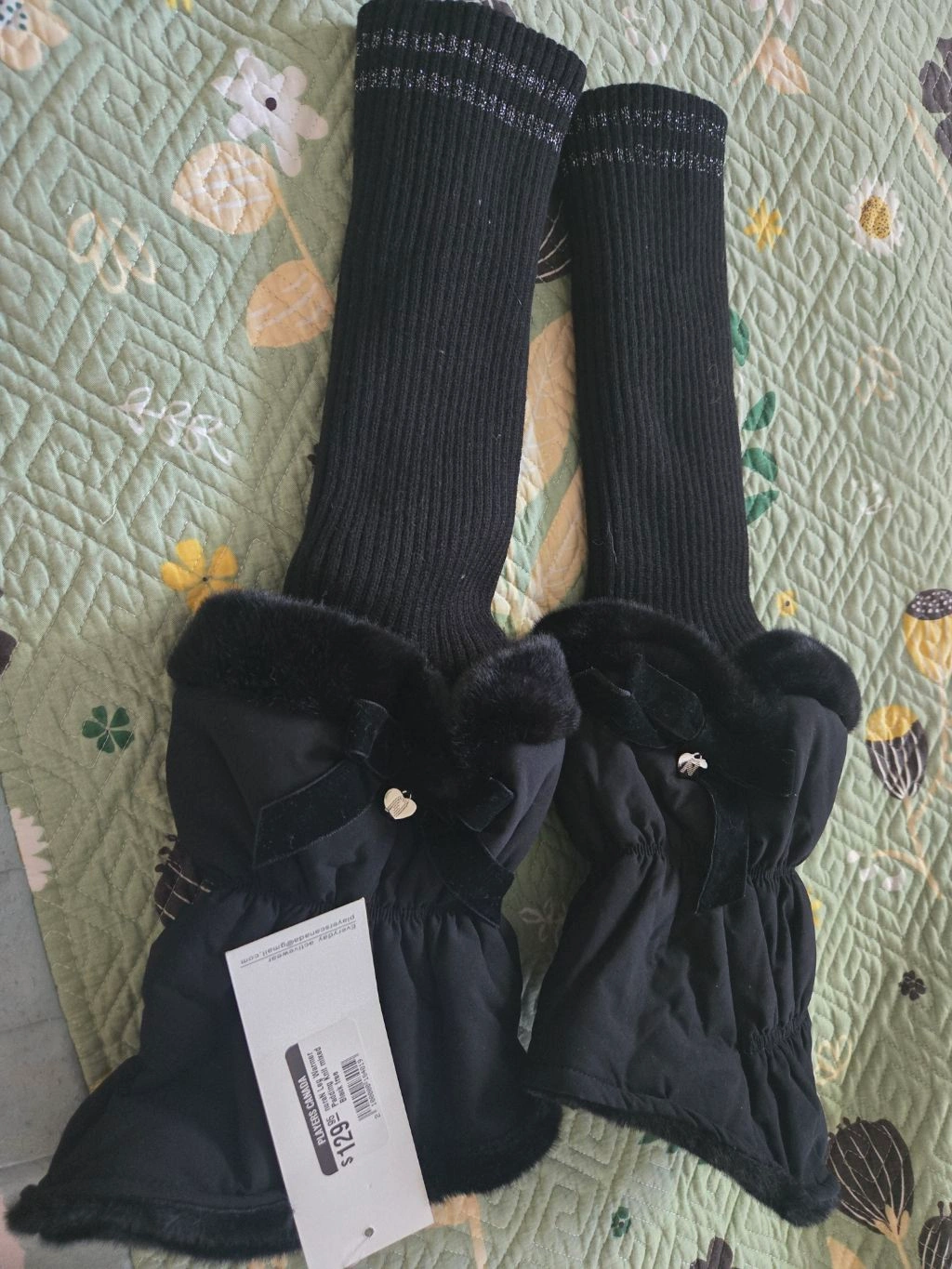 Cute Rose Cafe leg warmers in black and white! They have a bow detail and are in great condition