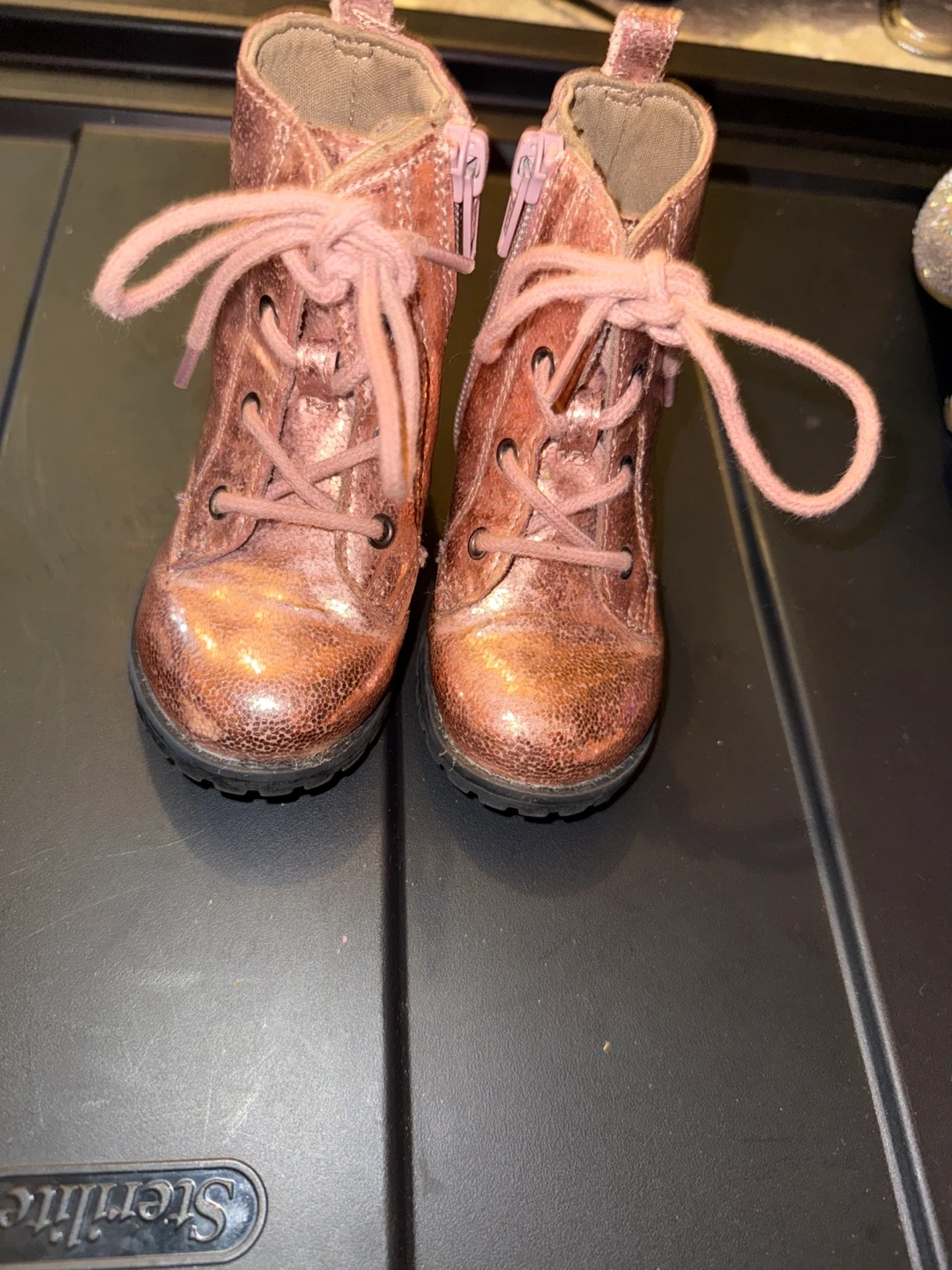 Cute rose gold glitter boots in size 8! These boots have a zipper on the side and laces in the front. They are in good condition and ready for a new home!