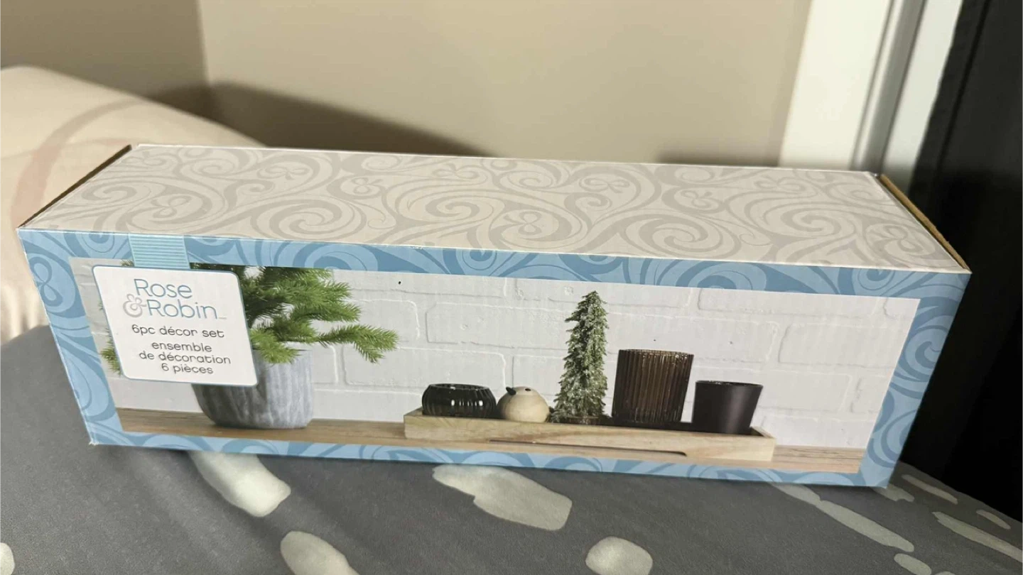 Selling a brand new Rose & Robin 6-piece decor set! It's still in its original packaging and ready to add a touch of charm to your space. Includes everything you see pictured on the box, perfect for a shelf or table centerpiece
