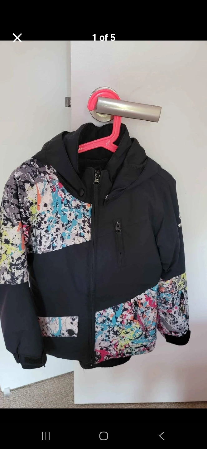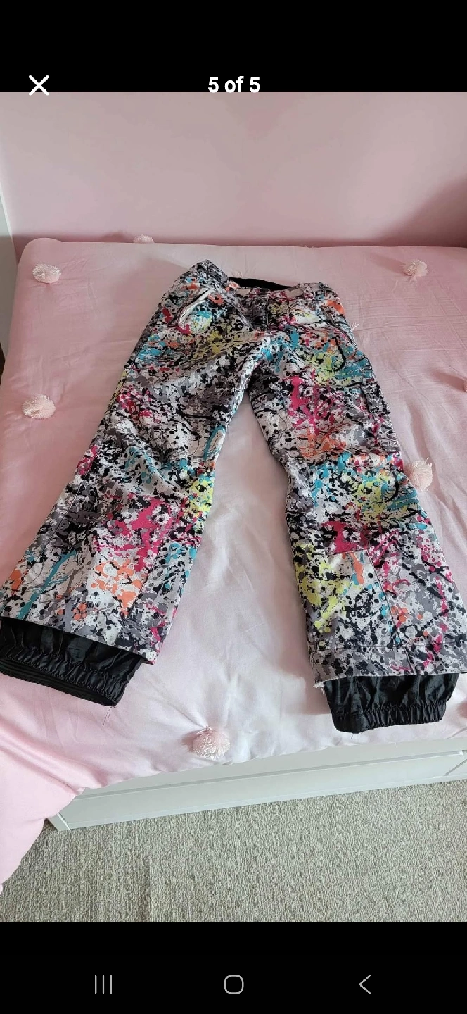 10Selling a Rossignol ski jacket and pants set for kids. size 8 The jacket is black with a colourful splash design, and the pants match. Perfect for hitting the slopes this winter!