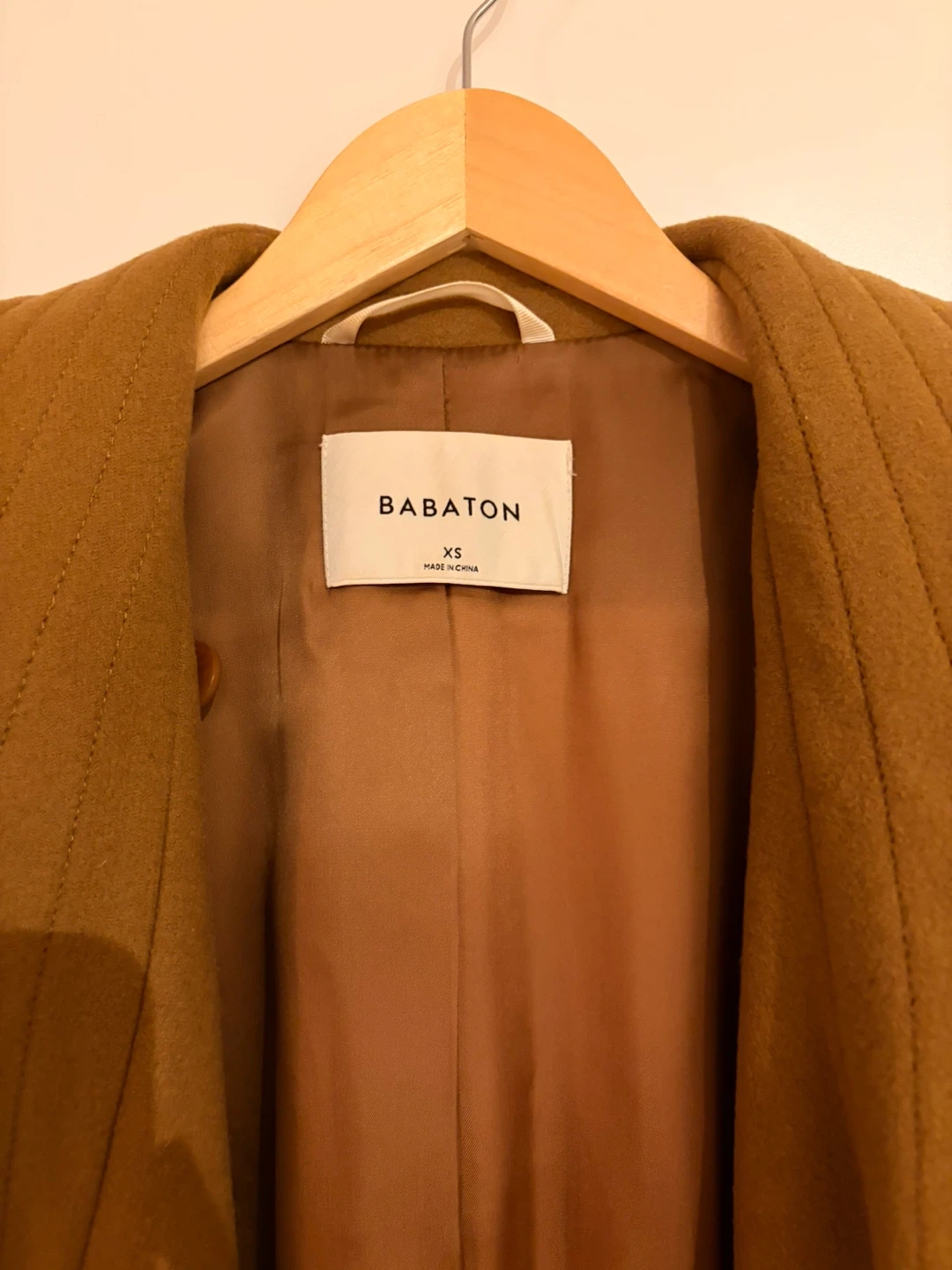 Selling a Babaton coat in size XS! It's a beautiful caramel brown colour and made from a virgin wool blend (94% wool, 6% Nylon). Perfect for staying warm and stylish during the cooler months!