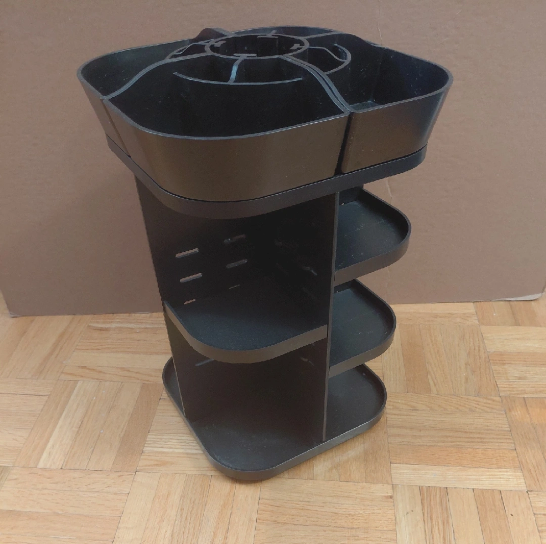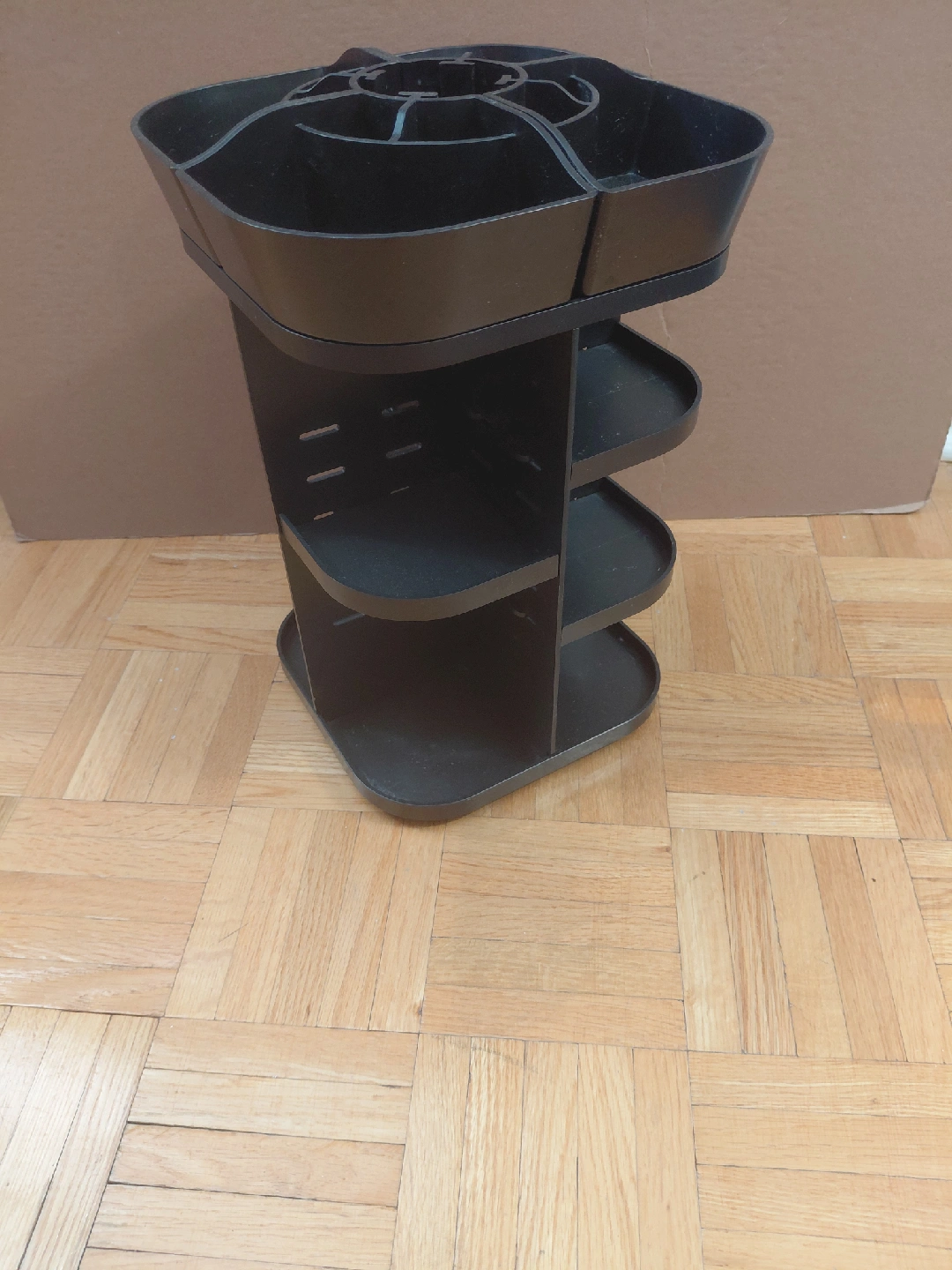 311Declutter your space with this rotating makeup organizer! It's perfect for keeping all your cosmetics, skincare, and accessories neatly organized and easily accessible. This organizer is in great condition and ready for a new home. You can adjust the height of the shelves to suit your needs. For pick up only.