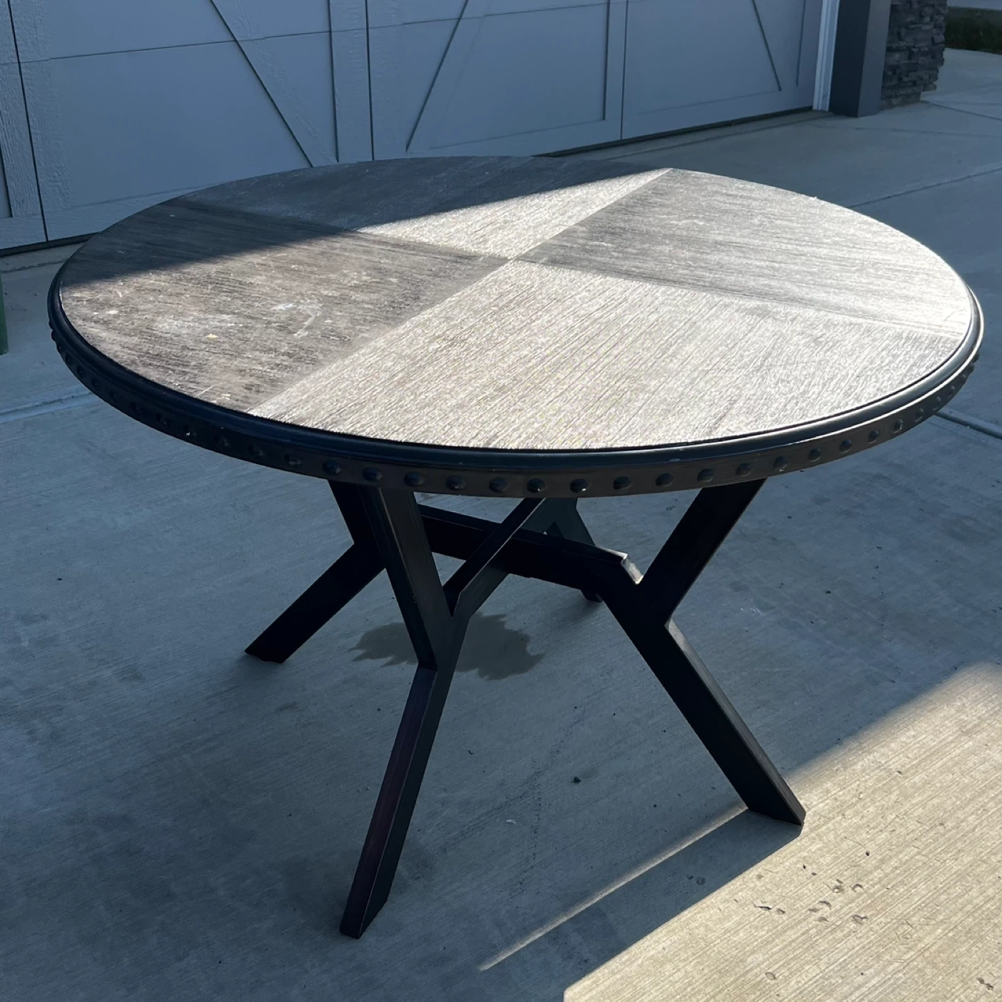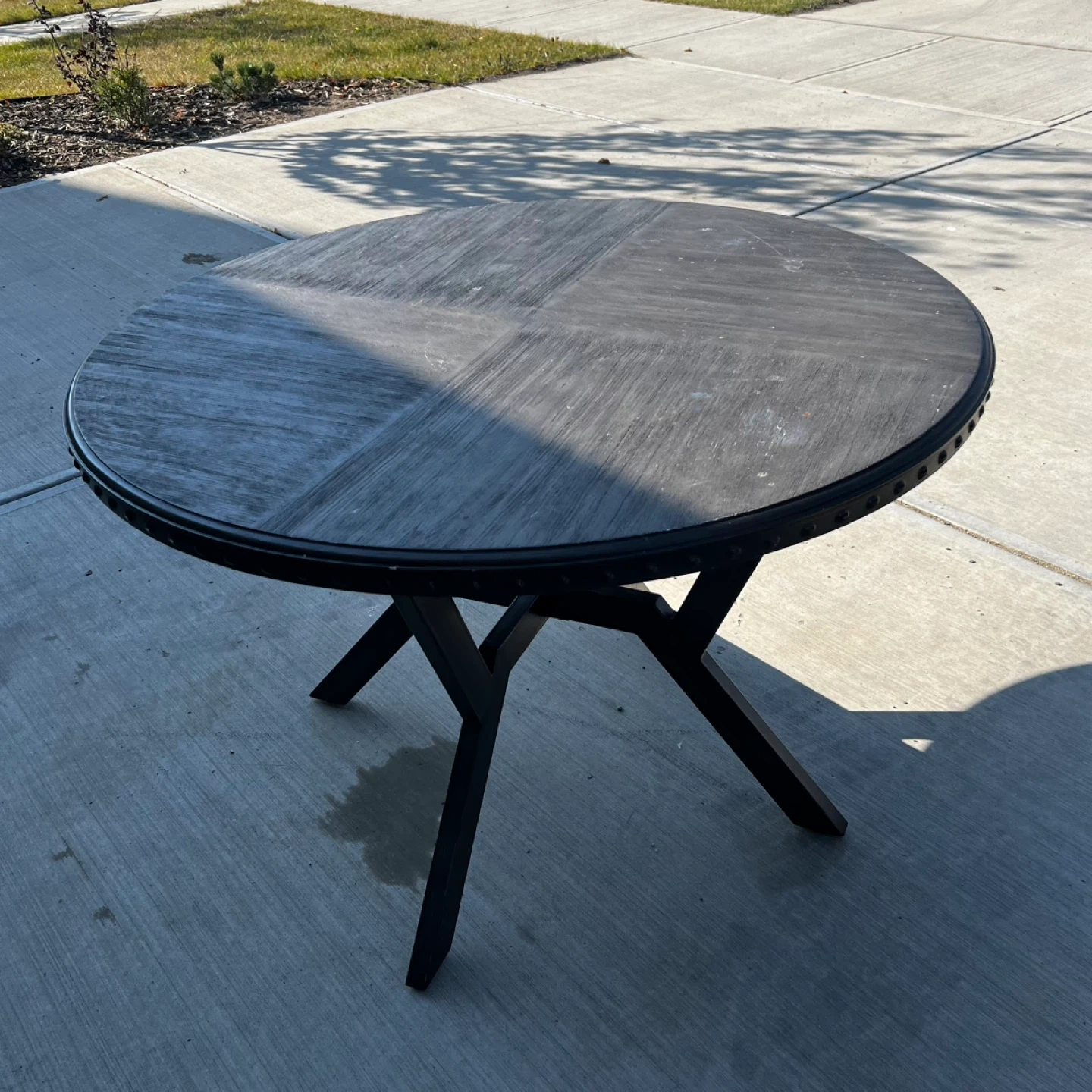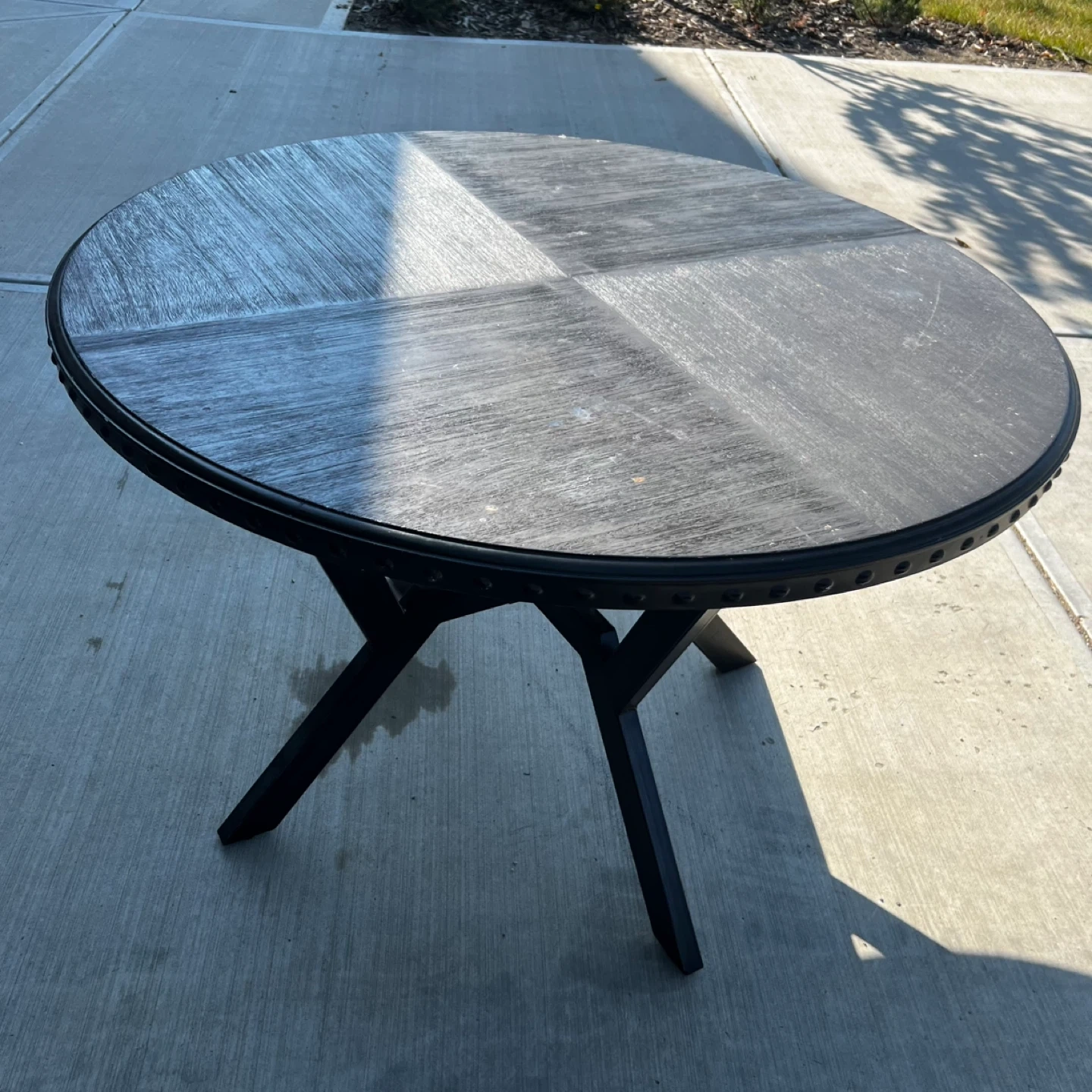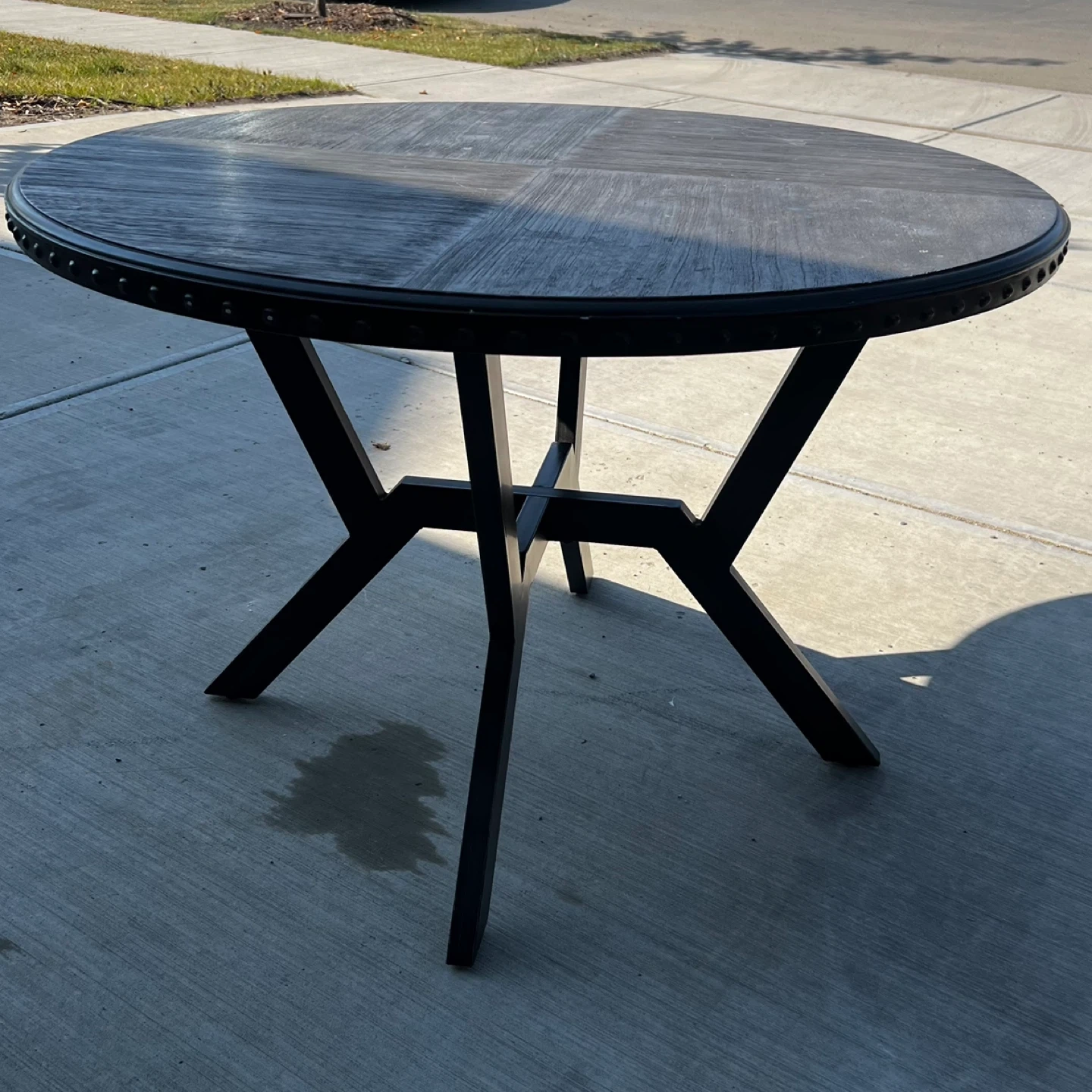 149It's In Good Condition Has Some Wear As Used. Dark Wood Look Top & Black Metal Legs. It's In Good Condition & Would Be Great For A Dining Space. Cash & Pick Up Only Can't Deliver. FIRST COME FIRST SERVE NO HOLDS.