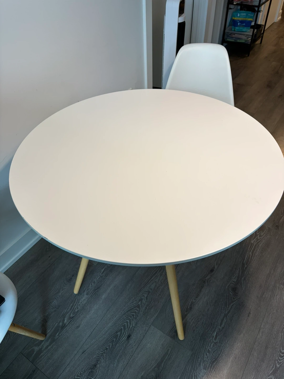 146Selling a round dining table! It's a great size for small spaces and has a clean, modern look. The table is in good condition and ready for a new home. Perfect for a condo or apartment!