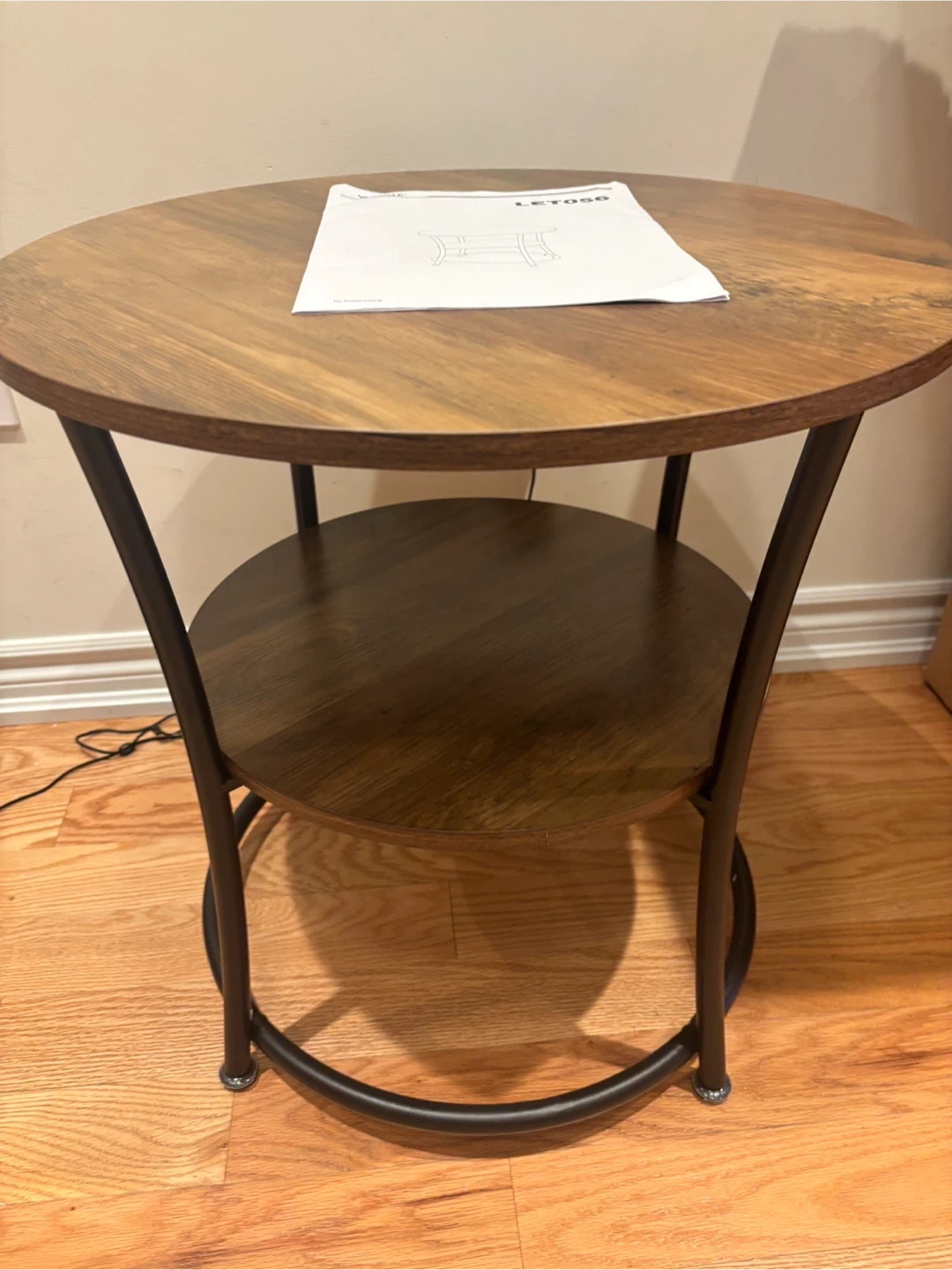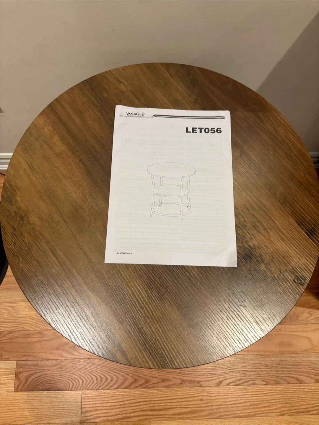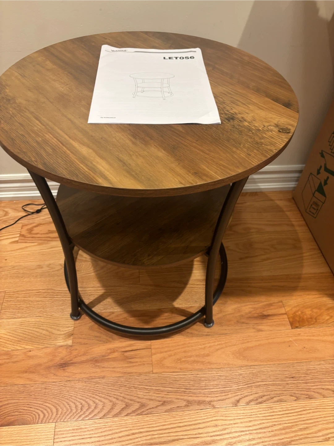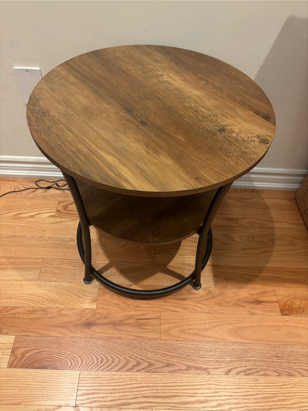 202Looking to add a touch of rustic charm to your living space? This VASAGLE round end table is perfect! It features two tiers for storage and display, with a sturdy metal frame. The table top is 21.7" in diameter (55 cm), and the lower shelf is 16.3" in diameter (41.4 cm). The overall height is 21.7" (55 cm).