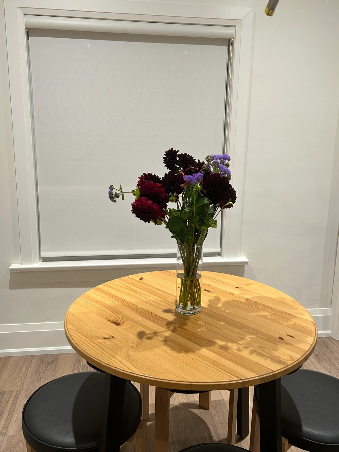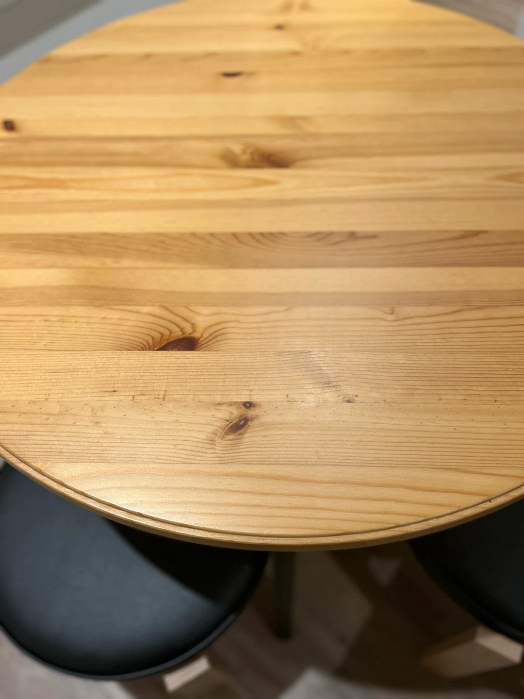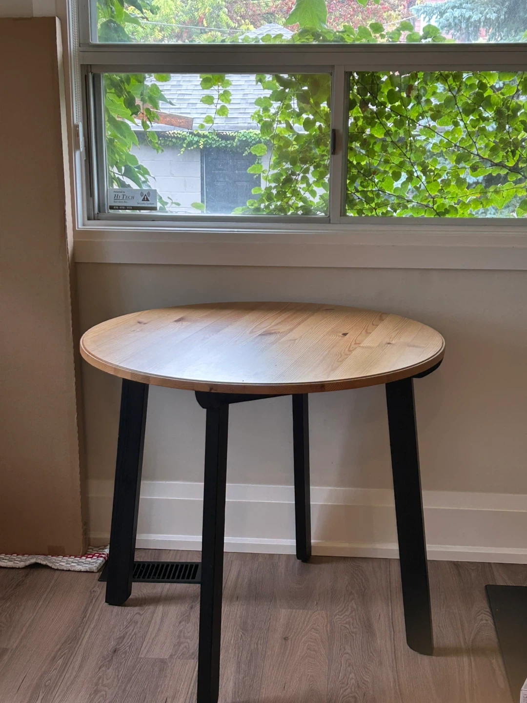 73Round table in solid wood with antique finish and black legs. Perfect for two or four. It's a great set for a small dining area or kitchen! designer: Mikael Axelsson for IKEA. No longer in production in Canada.