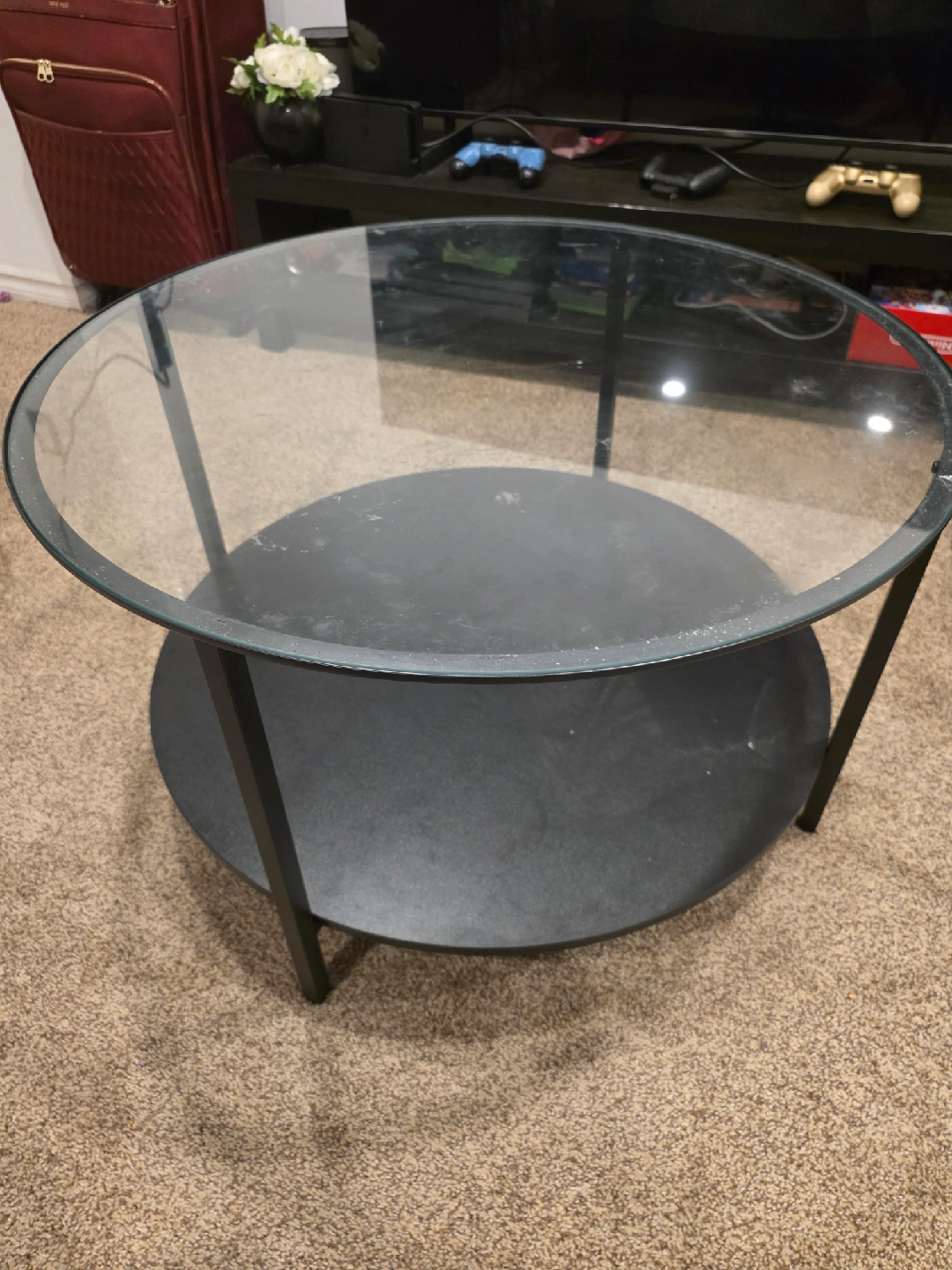 Glass Top Dining Table with 4 Black Chairs