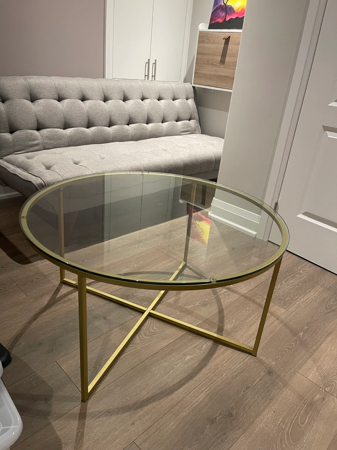 Modern Round Glass Dining Table with 4 Grey Velvet Chairs