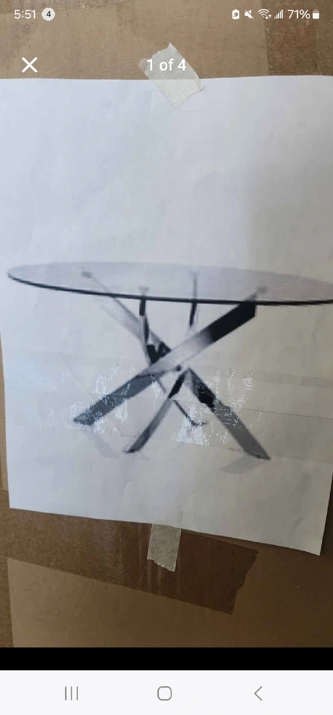 10Selling a round glass dining table. It's still in its original box, ready for easy transport and assembly! The table features a sleek glass top and a modern, eye-catching base design. Perfect for adding a touch of elegance to your dining space
