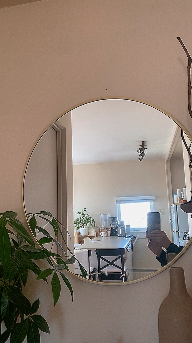258Selling a stylish round mirror with a gold frame. It's in great shape and would look lovely in any room! Perfect for adding a touch of elegance to your home decor