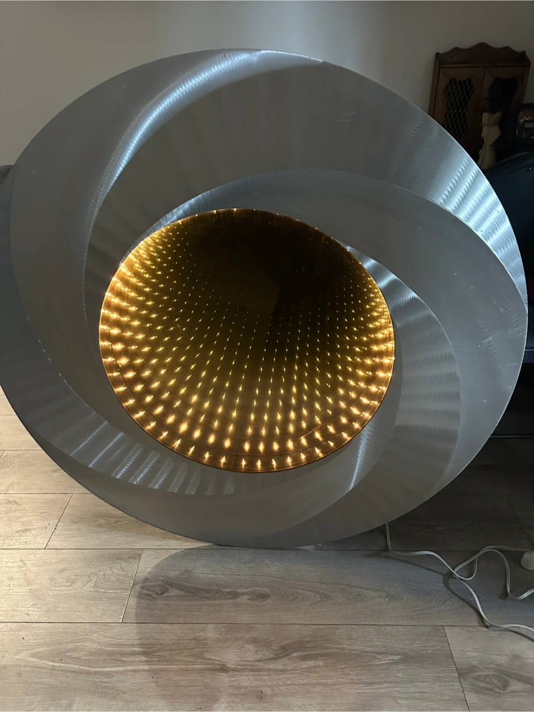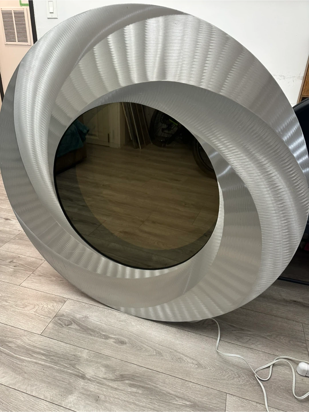 60Selling a unique round infinity mirror! It has a cool silver finish and creates a really neat visual effect with the lights inside. It's in great condition and would be a fun addition to any room