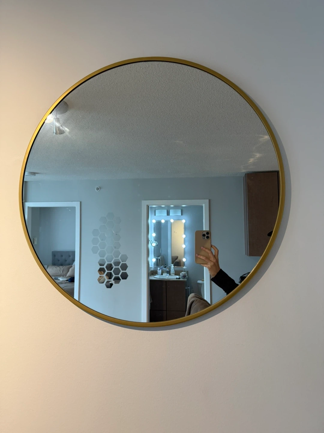 Selling a stylish round mirror with a gold frame! It's in perfect condition and would look lovely in any room. Perfect for adding a touch of elegance to your home decor. It's ready to find a new home! Size 70x70