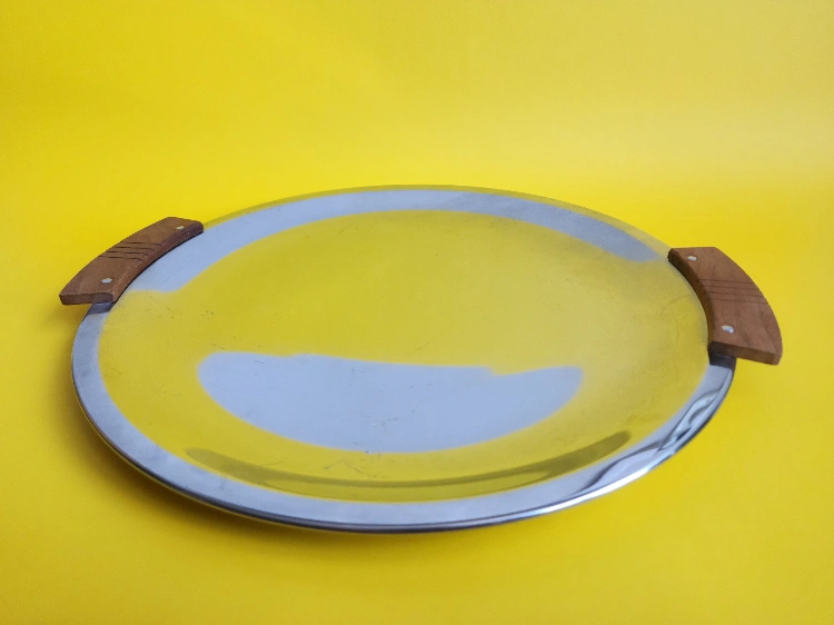 Round Serving Tray with Wooden Handles
