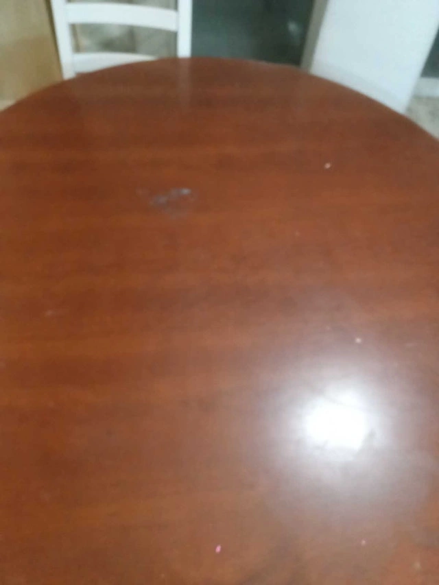 15This is a round table with a wood-look top and black legs, perfect for a small dining area or breakfast nook. Its compact size makes it ideal for apartments or condos where space is at a premium. This table is used and has some wear and tear on the top surface as shown in the photos. * Shape: Round * Leg Colour: Black This table is ready to be the centrepiece of your next meal! If the ad is up, it's still available!