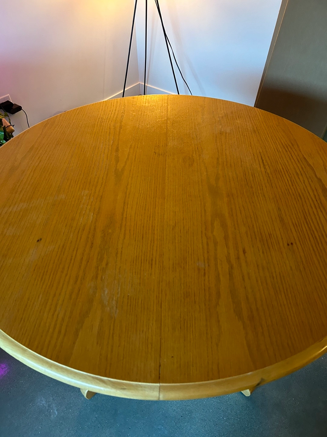 15Give your kitchen a boho/farmhouse-inspired touch with this circular, solid wood dining table. Its rounded top features a removable leaf. It offers space to gather four people in its circular form and 6-8 people when extended. It’s extended feature is for those who love hosting! Space efficient, perfect for an apartment or small home. Features: Diameter: 42 inches Length (When Extended): 60 inches Height: 30 inches Good Condition: This table has been loved, but is still in good condition Easy Assembly: The table top and base can be easily assembled and disassembled, for an easier move Pick up on only. Located in Osborne.