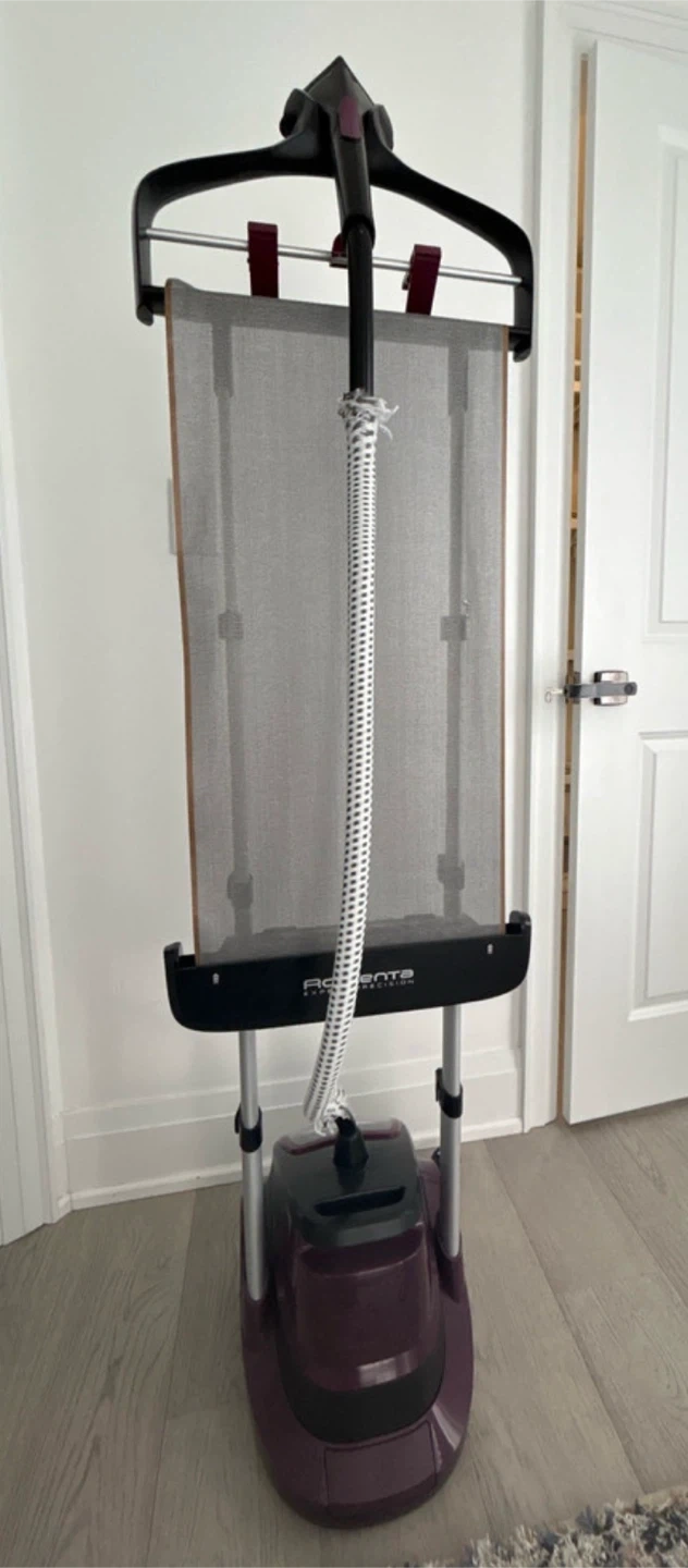 60This Rowenta Precision Valet Garment Steamer works perfectly and produces strong, continuous steam to quickly remove wrinkles from clothes, curtains, and more. ✅ Fast heat-up time ✅ Large water tank for extended use ✅ Built-in hanger and clips for easy steaming ✅ Adjustable height pole ✅ Easy-roll wheels for mobility
