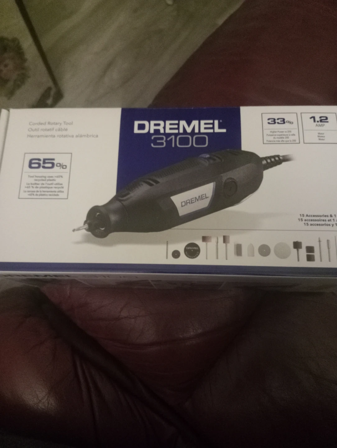 This Dremel 3100 corded rotary tool comes with 15 accessories. It's a 1.2 amp tool. It's perfect for crafting and DIY projects!