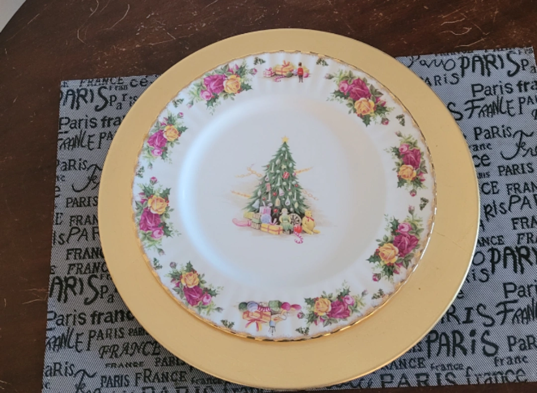 Selling a Royal Albert Christmas Magic plate. It features a beautiful Christmas tree design surrounded by roses and other festive elements. Perfect for adding a touch of holiday cheer to your table setting!