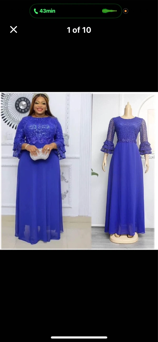 105Beautiful royal blue maxi dress with lace detailing on the bodice and sleeves, and a flowing chiffon skirt. Perfect for a special occasion!